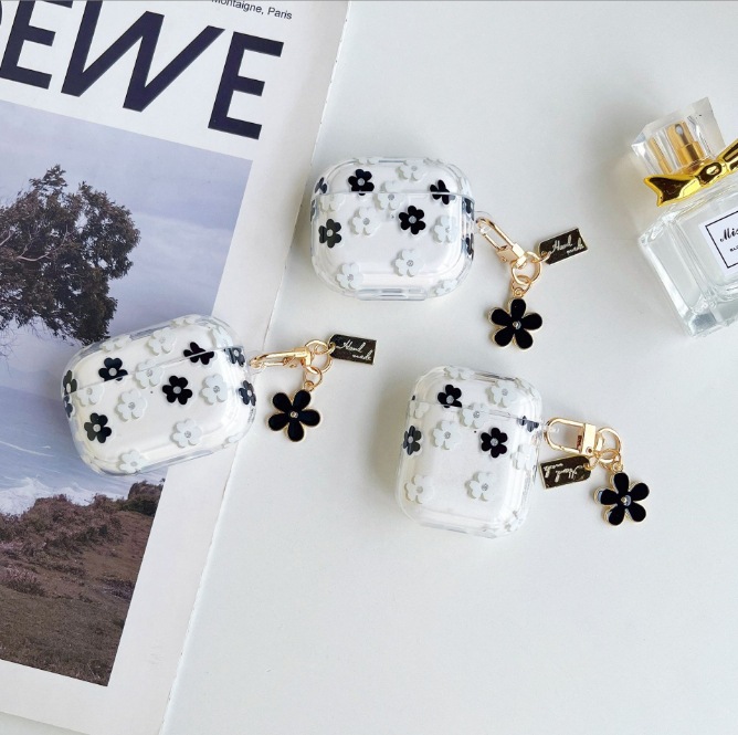 Foreign Trade Transparent Glitter Flower Suitable for AirPods Pro Protective Cover 4 Soft New Apple 2Nd Generation Standing Earphone Case