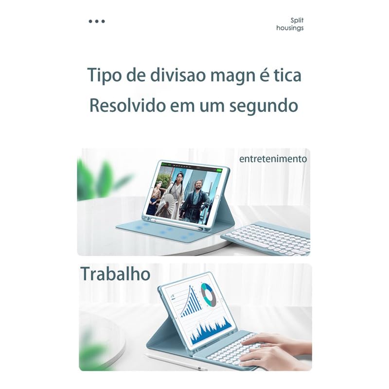 • Kit Capa para iPad 10ª Geração/11ª Geração: Capa para Tablet + Teclado com teclas redondas + Mouse