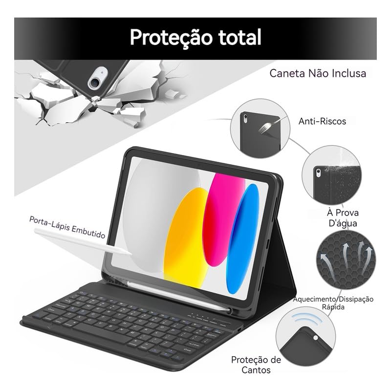 • Kit Capa para iPad 10ª Geração/11ª Geração: Capa para Tablet + Teclado com teclas redondas + Mouse
