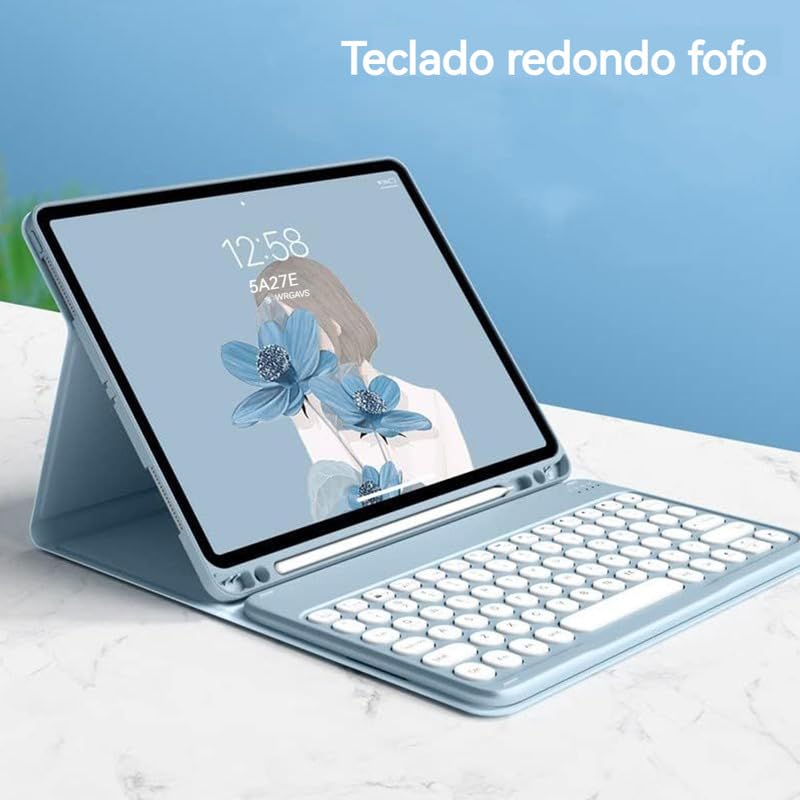 Kit Capa para Samsung Tab S7fe/s7plus/s8plus : Capa para Tablet + Teclado com teclas redondas + Mouse