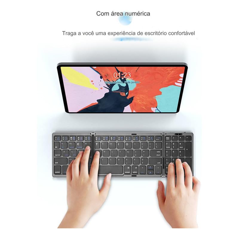 Teclado Bluetooth Sem Fios Portátil e Dobrável Universal