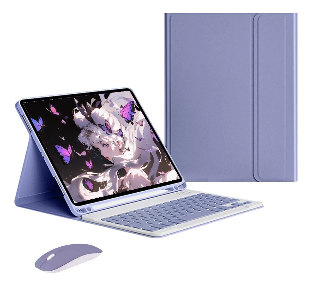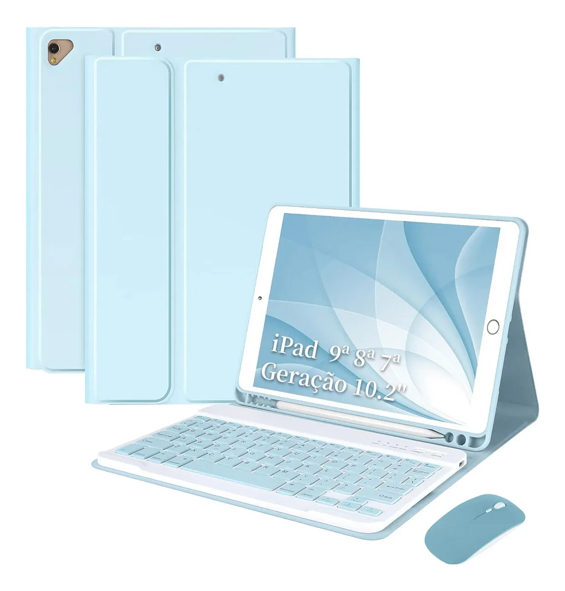 Teclado com tampa redonda destacável sem fio de 10,2 polegadas para iPad 9/8/7 geração com capa protetora – Porta-canetas integrado na capa, à prova de choque e arranhões (Roxo)
