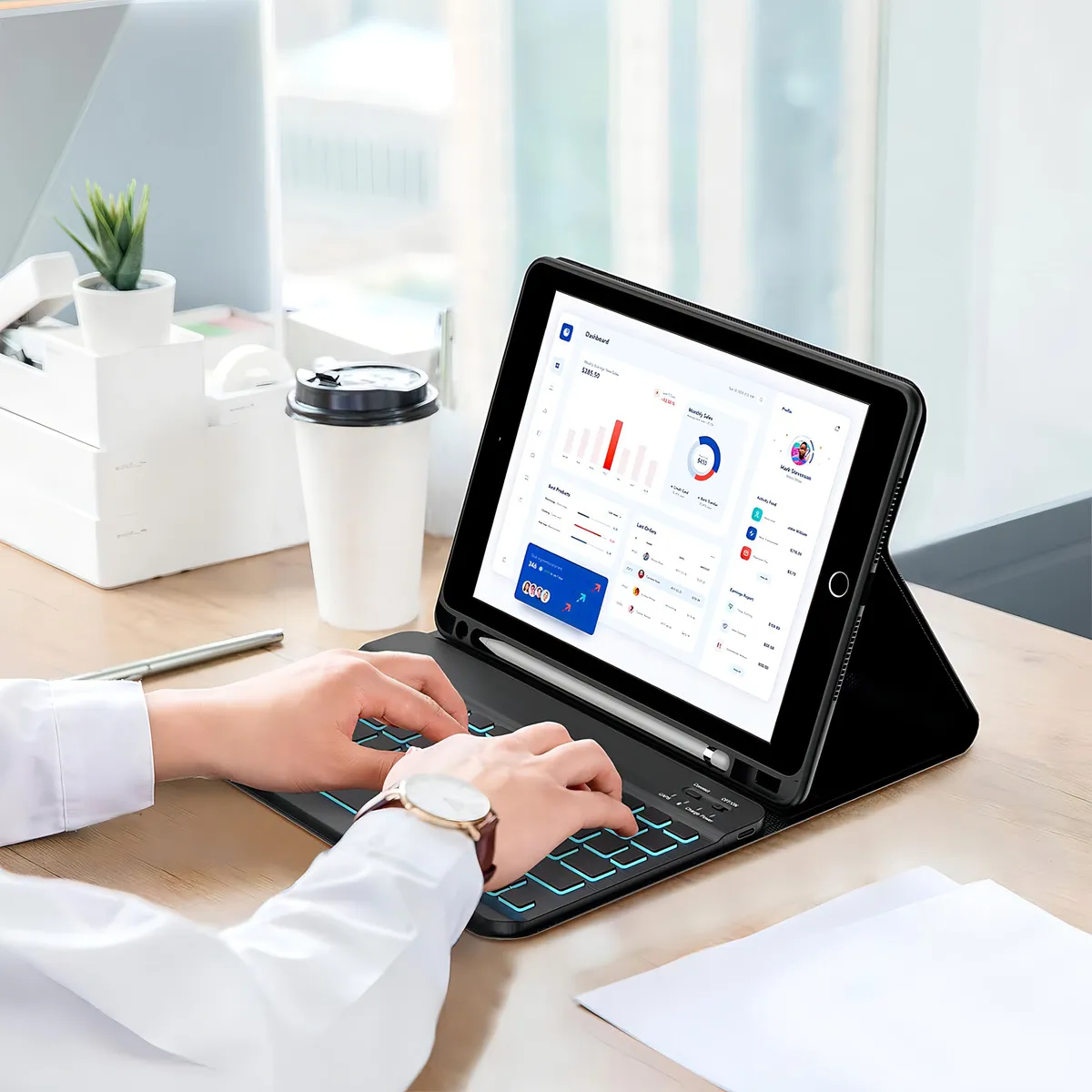 Teclado Mágico Com Capa Bluetooth Para Samsung Galaxy Tab S7+/s8+