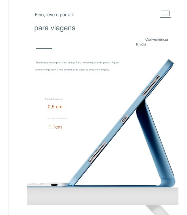 • Capa para iPad Pro 11 Teclado Touch Mouse Bluetooth Cor Azul Teclado Touchpad Mouse Bluetooth-0%