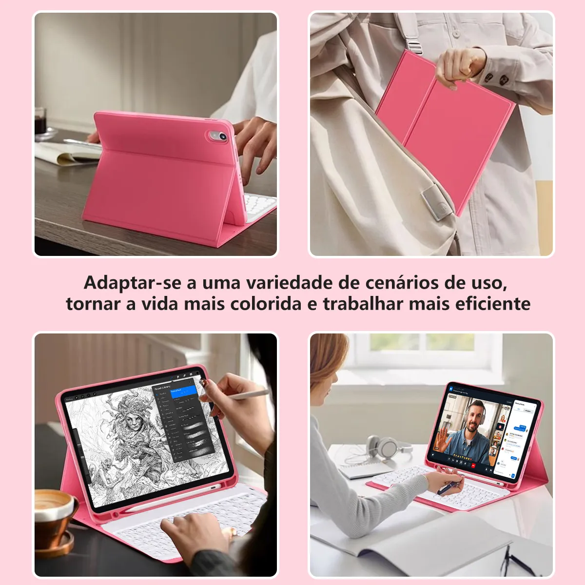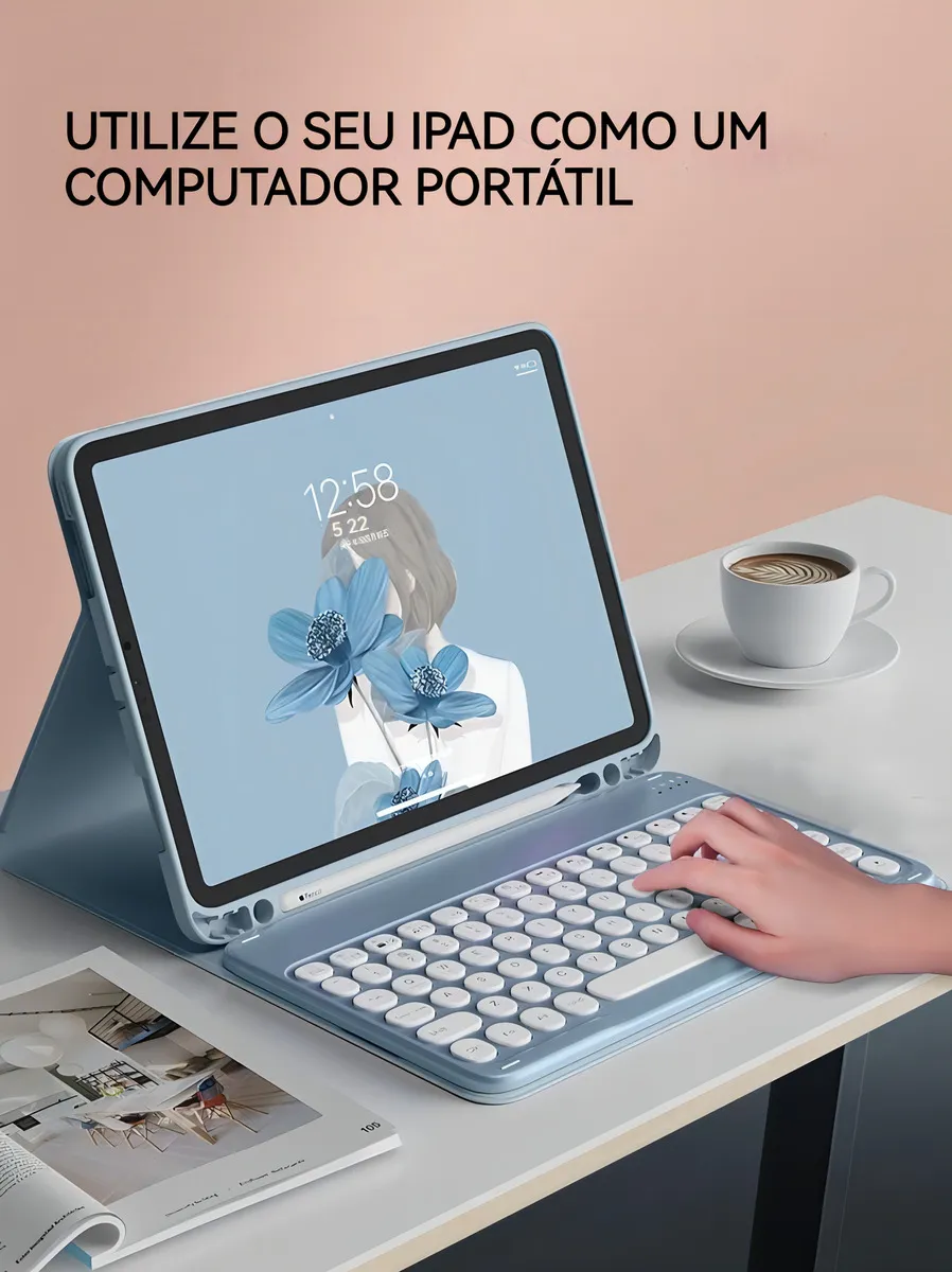 • Capa Para iPad Air4/air5 10.9pol E Teclado De Bluetooth Cor Sakura Pink + Teclado-1%