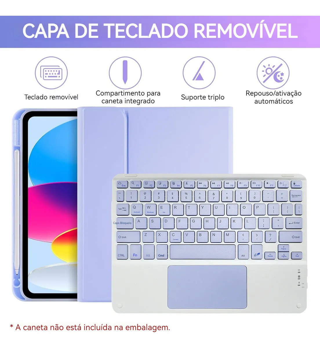 • Capa Para iPad Air4/air5 10.9pol E Teclado De Bluetooth Cor Lavender Grey + Teclado-1%