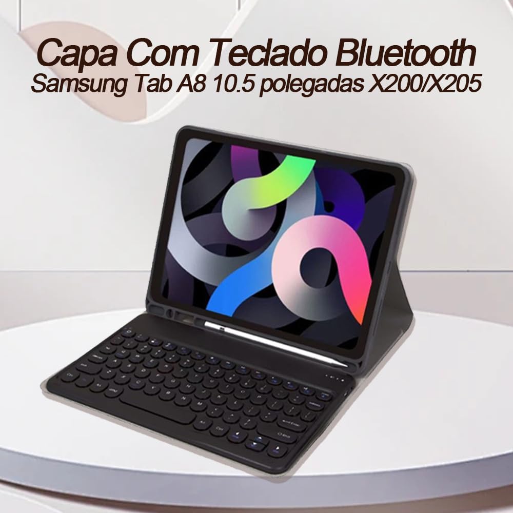 Capa Para Tablet e Teclado Bluetooth Magnético Removível Para Samsung Tab A8 10.5 Polegadas.