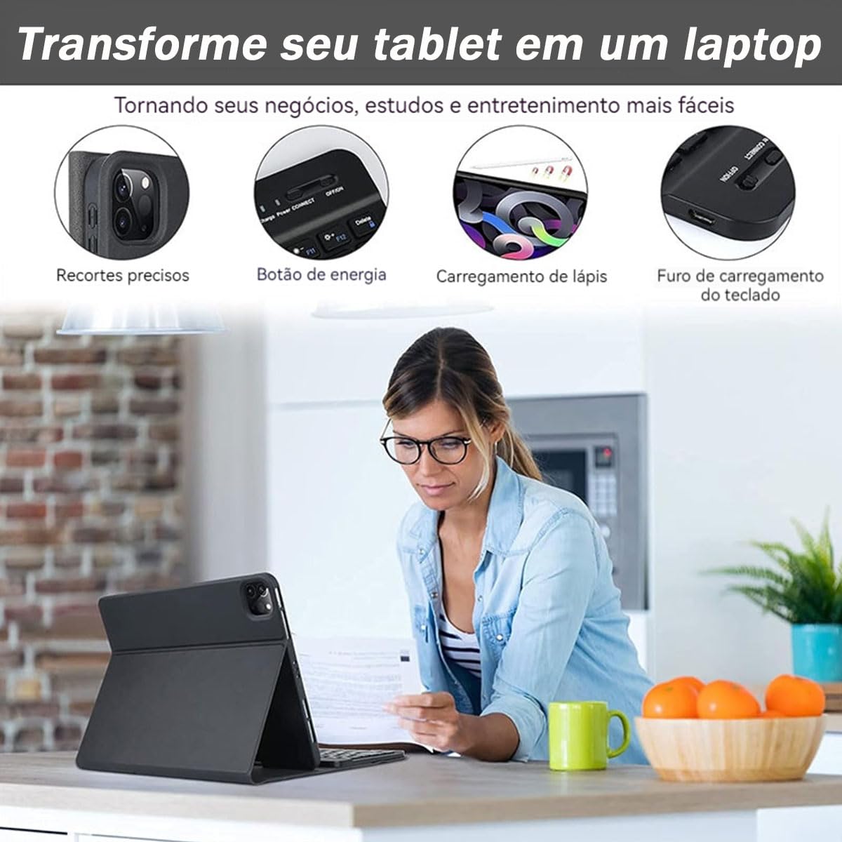 · Este produto inclui uma capa protetora e um teclado Bluetooth removível para tablet, 2 em 1.