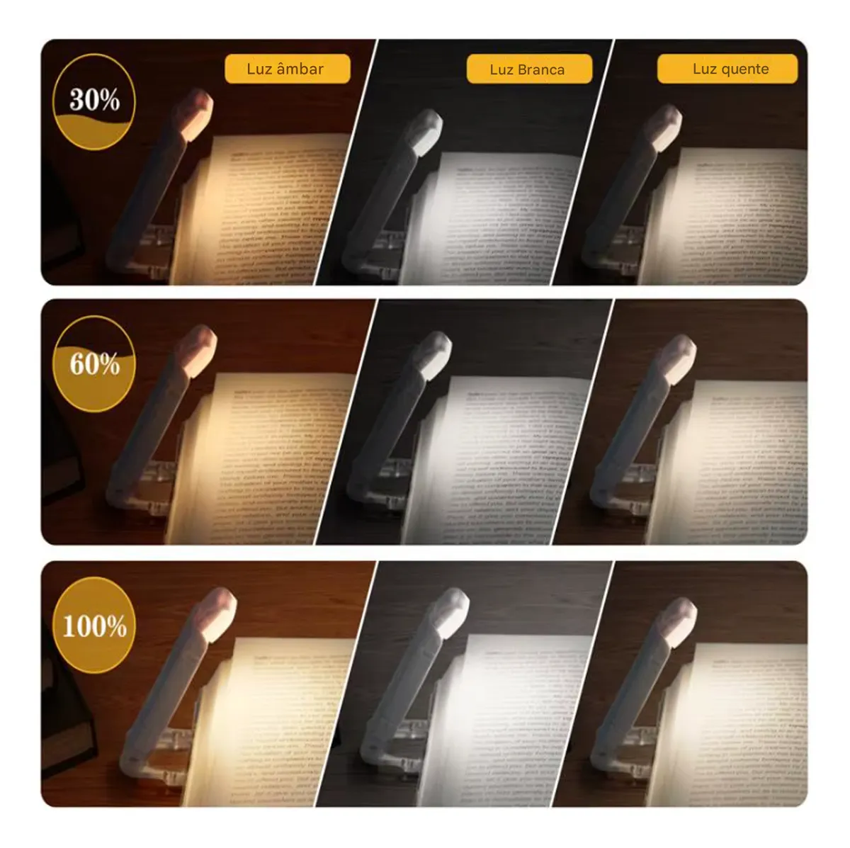 Abajour Proteção Ocular Recarregável Usb Presa Ao Livro Led