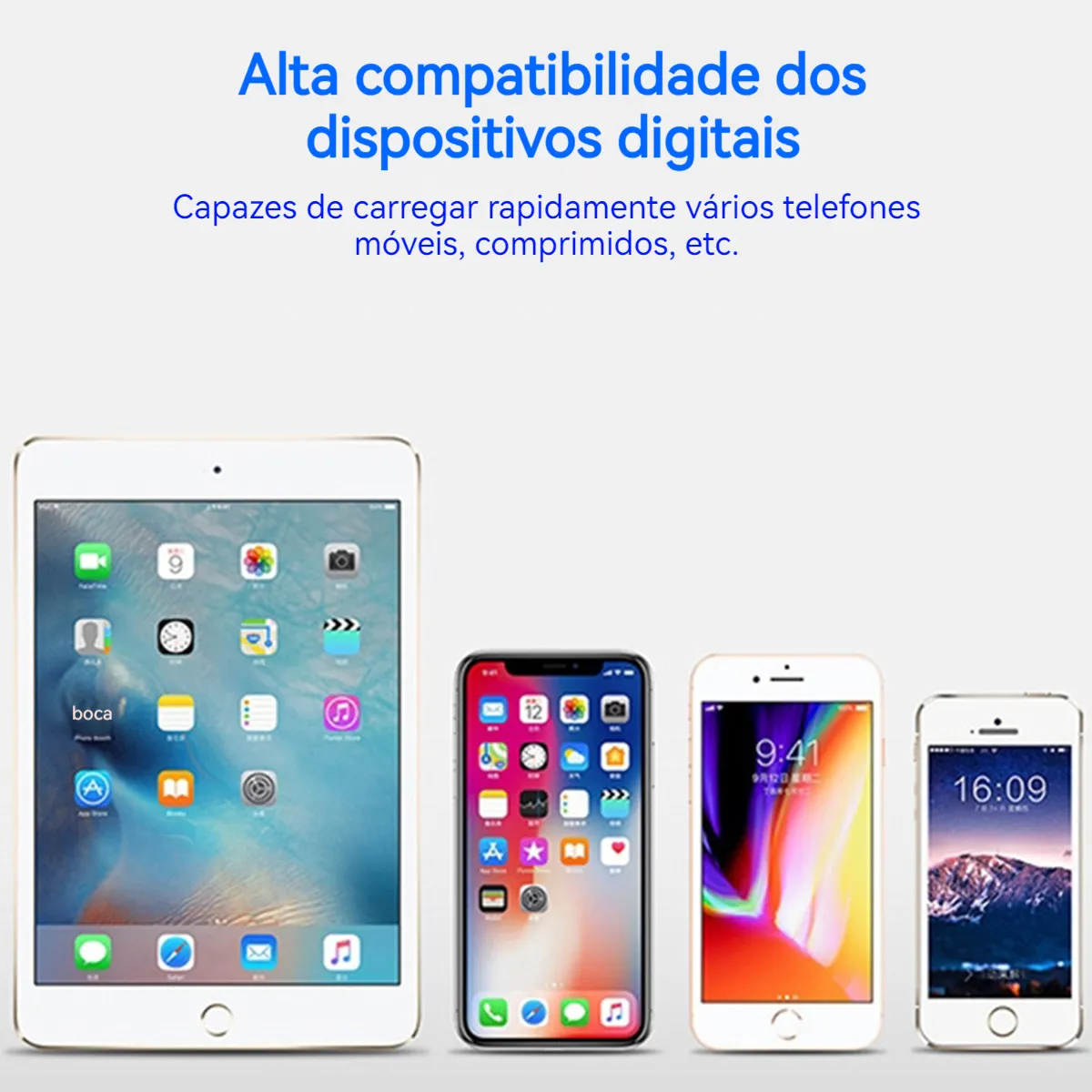 Multiuso e Conveniente: Com a capacidade de carregar vários dispositivos simultaneamente, este cabo é perfeito para famílias ou pessoas que têm múltiplos dispositivos. Ele oferece um carregamento eficiente e confiável sempre que você precisar.