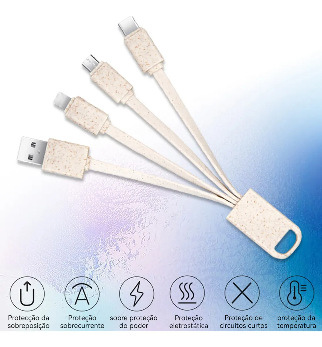 Escolha o Cabo de Carregamento Ecológico com Múltiplas Interfaces e desfrute de um carregamento rápido, seguro e amigo do ambiente para todos os seus dispositivos. Tenha a tranquilidade de que está fazendo uma escolha sustentável sem comprometer o desempenho.