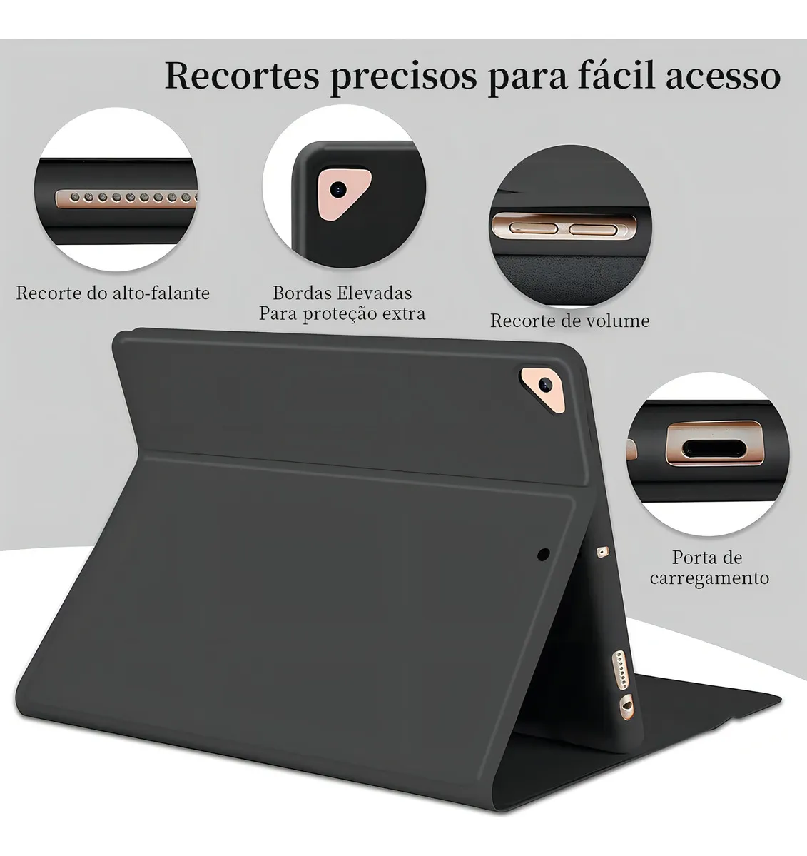 Projetado meticulosamente para encaixar perfeitamente no iPad 10.2 2019/2020/2021, air3 10.5 polegadas e Pro 10.5 polegadas, garantindo acesso fácil a todas as portas e funções.