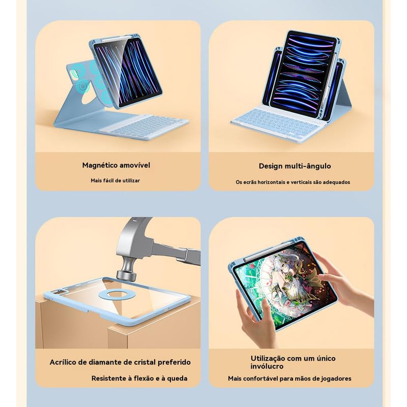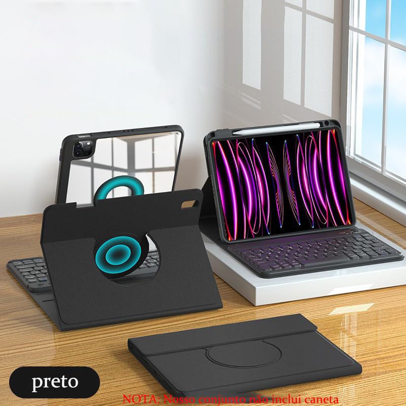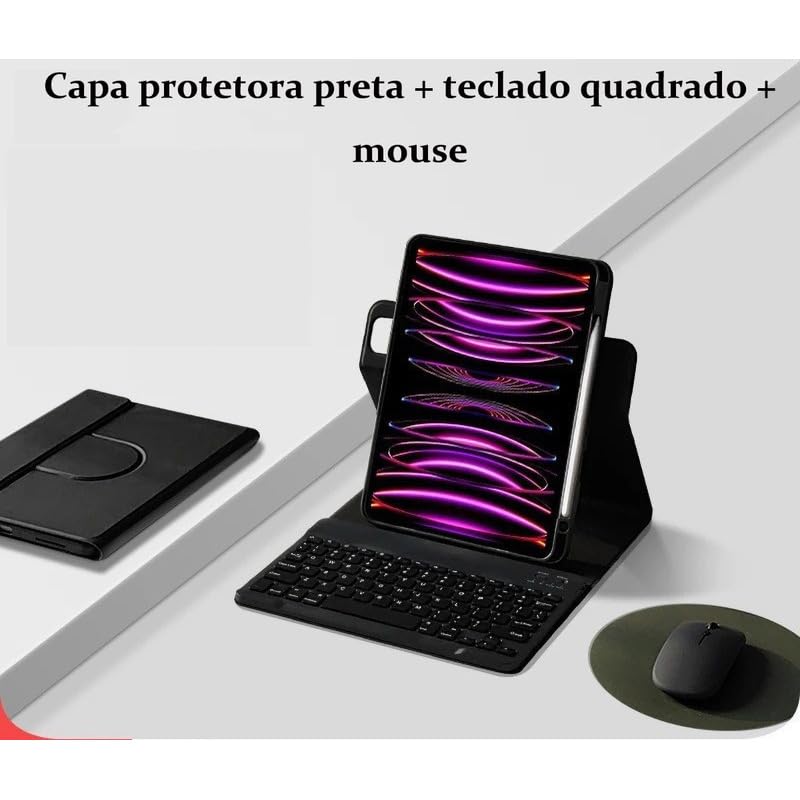 Descubra o Novo Protetor Magnético Rotativo para iPad! Transforme sua experiência com o iPad com nosso inovador protetor magnético rotativo. Projetado para oferecer versatilidade e proteção premium, este acessório é ideal para quem busca praticidade e segurança. O conjunto contém: Capa * 1 Teclado Bluetooth * 1 Mouse Bluetooth de modo duplo * 1 Características que Você Vai Adorar: Rotação 720º: Gire facilmente entre modos retrato e paisagem, com a flexibilidade de separar em peças independentes. Material de Alta Qualidade: resistente a deformações e com um acabamento cristalino que combina durabilidade e elegância. Proteção Contra Quedas: Resistente a flexões e impactos, oferecendo uma camada extra de segurança para o seu iPad. Design Magnético Forte: Mantém seu iPad firmemente seguro, mesmo em movimento, sem risco de quedas acidentais. Fácil de Montar e Desmontar: Aproveite a conveniência de separar o teclado ou a proteção conforme sua necessidade, mantendo seu iPad leve e portátil. Múltiplos Ângulos: Ajuste o iPad em várias inclinações para uma visualização confortável em qualquer situação. Design Ergonômico: Teclas silenciosas e confortáveis que proporcionam uma experiência de digitação suave e discreta, ideal para qualquer ambiente. Material Premium: Superfície em couro selecionado, suave ao toque, resistente a manchas e fácil de limpar. Porta-lápis Integrada: Guarde seu Apple Pencil de forma segura e mantenha-o sempre carregado Proteção Completa: Capa de silicone macio que envolve completamente seu iPad, garantindo uma proteção superior contra impactos e arranhões. Transforme seu iPad em uma ferramenta ainda mais poderosa e protegida com nosso protetor magnético rotativo. Não deixe de aproveitar essa combinação perfeita de funcionalidade e estilo para suas atividades diárias! Para iPad Pro 11in (2018/2020) iPad pro 2018 (A1980A2013A1934A1979), iPad pro 2020 (A2228A2068A2230A2231);