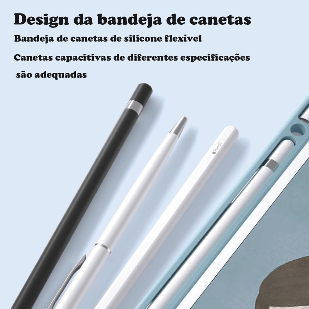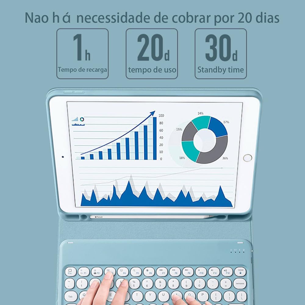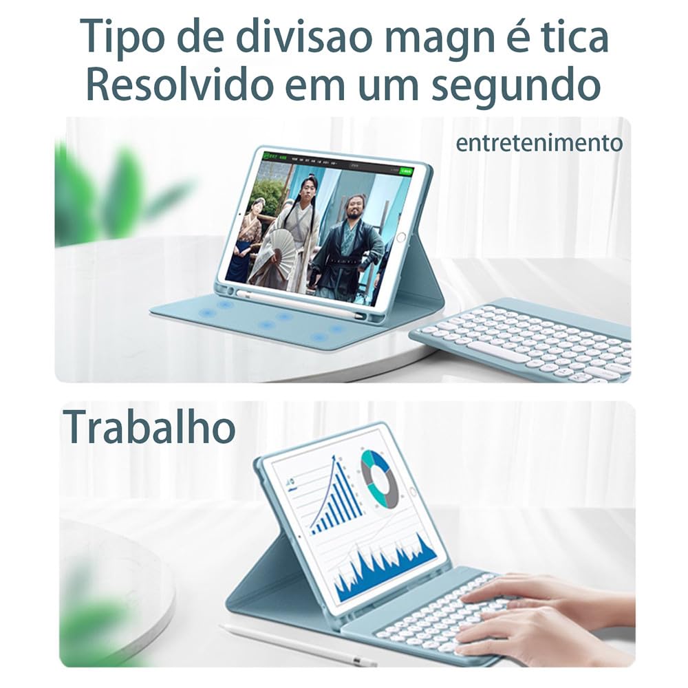 Lembrete: Não use protocolo de carregamento rápido ao carregar o teclado. Use o cabo de carregamento que fornecemos ou um cabo de carregamento comum. A corrente excessiva do protocolo de carregamento rápido pode causar falha no IC, tornando o teclado inutilizável. Método de conexão Bluetooth do teclado: primeiro carregue totalmente o teclado e, em seguida, pressione o botão ao lado do teclado para “ON”, pressione e segure as teclas “FN + C” para ativar o modo Bluetooth do teclado e, em seguida, ative o Link. Descrição do produto Visão geral Apresentando uma capa protetora feita sob medida de alta qualidade para o seu iPad Air 4/5 (10,9 polegadas). Este estojo se destaca pelo seu design em cores sólidas e minimalistas, mecanismo de fixação magnética e teclado ultrafino, oferecendo não apenas proteção completa, mas também praticidade e estilo ao seu aparelho. Design minimalista e cores sólidas O design de cor sólida e minimalista se encaixa perfeitamente no seu dispositivo e no seu estilo pessoal. Seja no escritório ou em movimento, você pode facilmente exibir seu gosto único. Fixação Magnética e Vários Modos O design exclusivo de fixação magnética permite que você alterne facilmente entre diferentes modos de uso. Seja assistindo vídeos, digite ou desenhando, você pode se adaptar facilmente a qualquer situação. Design leve Feito com materiais leves e construção refinada, o design geral é fino e fácil de transportar com você. Teclado sensível ao toque sensível ao toque O teclado embutido oferece excelente desempenho de digitação e tem uma espessura ultrafina de apenas 0,6 cm, garantindo comodidade sem ocupar espaço extra. Conclusão da conclusão O estojo protetor de alta qualidade que oferece utilidade e estilo, deixando seu iPad Air 4/5 (10,9 polegadas) mais versátil em qualquer ambiente.
