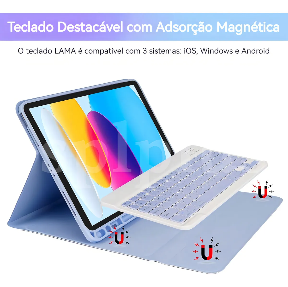 A parte inferior do teclado é projetada magneticamente para fácil remoção e torna seu iPad mais estável.