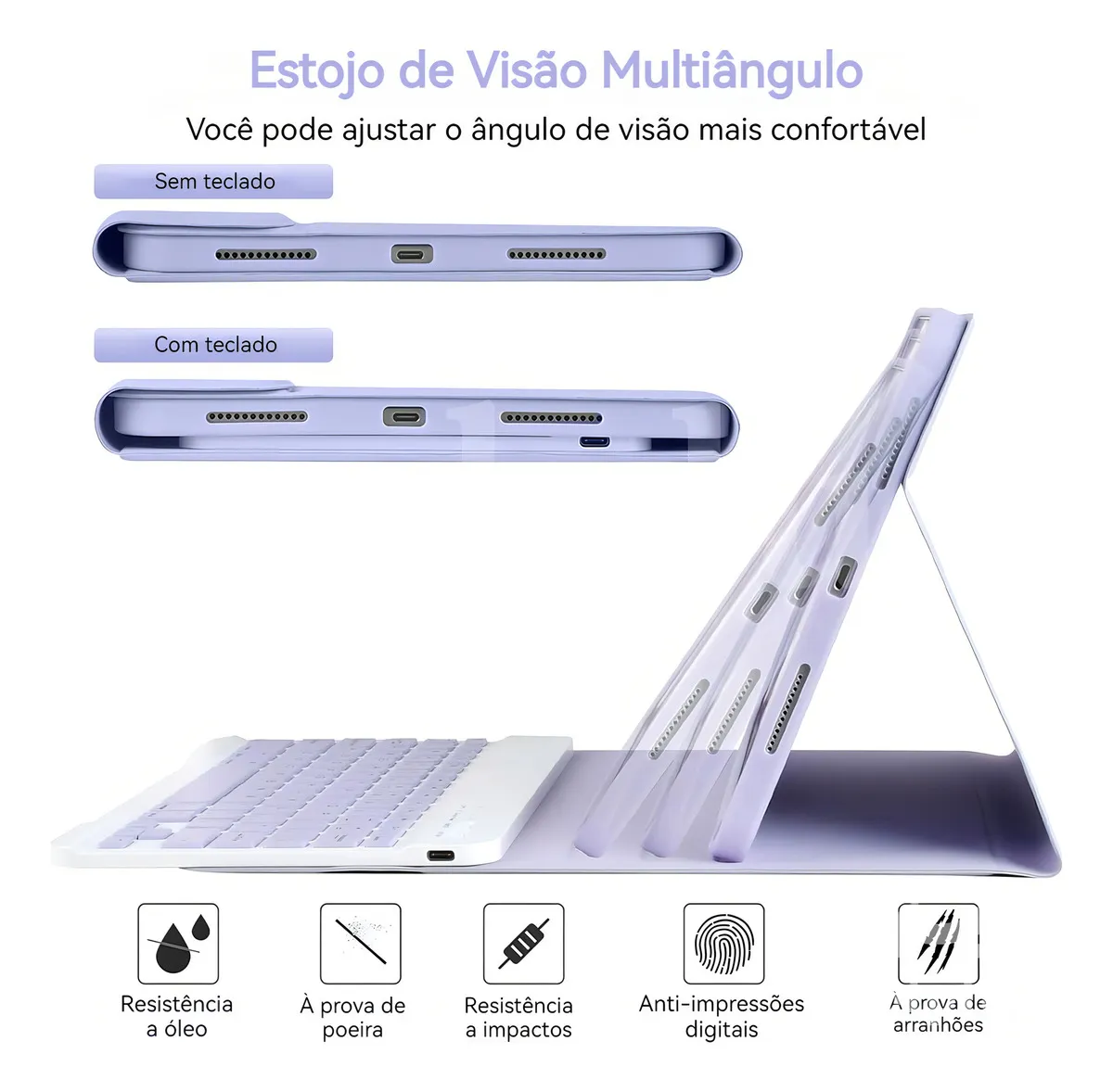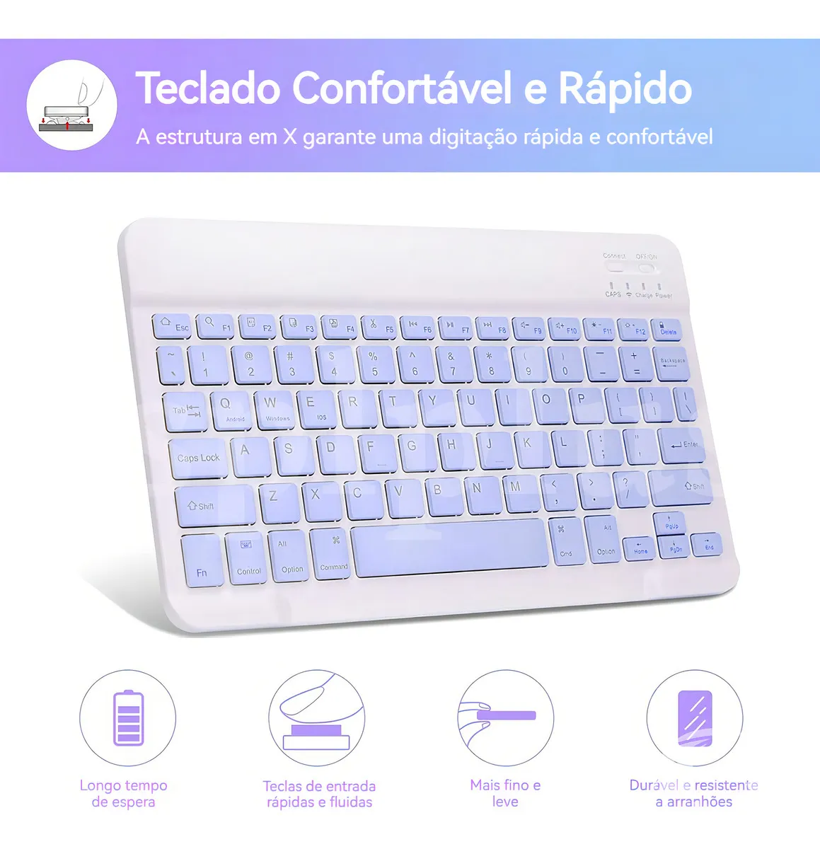 Capa Bluetooth sem fio com teclado – O design superfino adiciona proteção máxima com volume mínimo (0,38 pol.), proporcionando uma experiência de digitação suave e confortável.