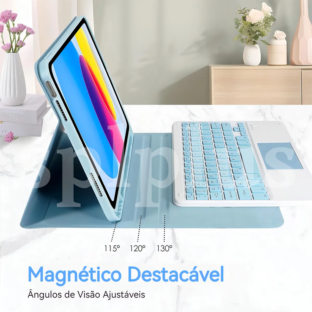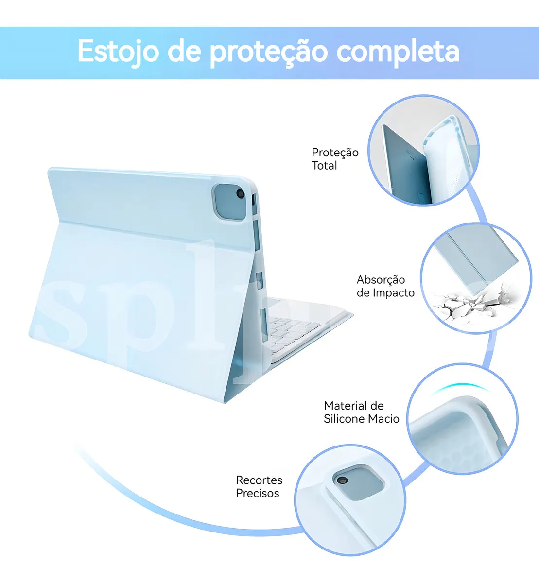 Capa Teclado Touch Mouse Para iPad 7ª/8ª/9ª Geração Cor Azul Teclado Trackpad Mouse Bluetooth
