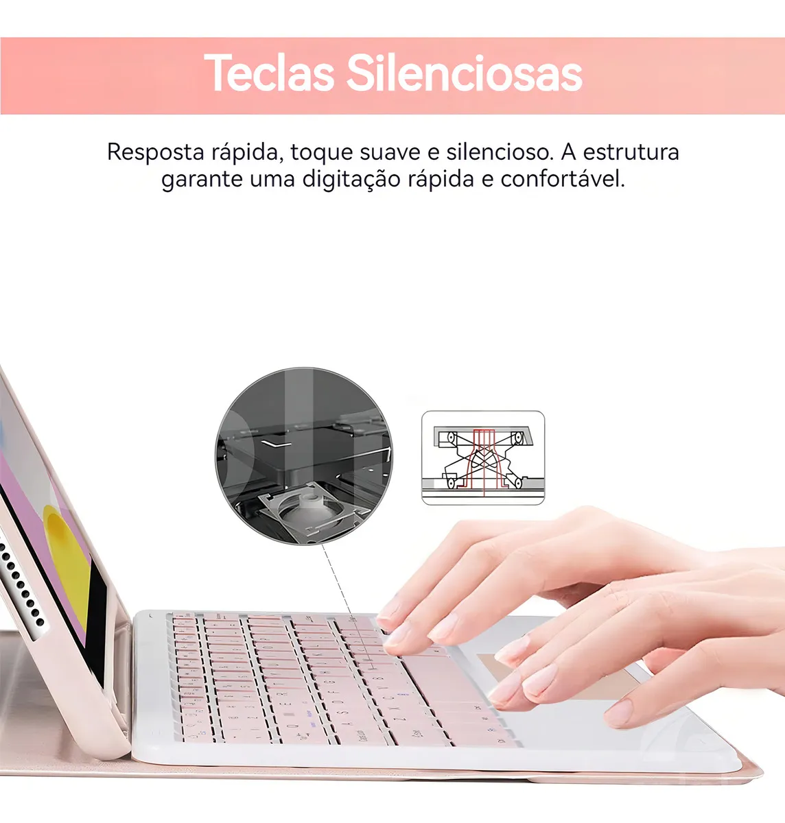 A tecnologia touch, combinada com a conexão Bluetooth sem fio, oferece uma experiência de digitação precisa e eficiente.