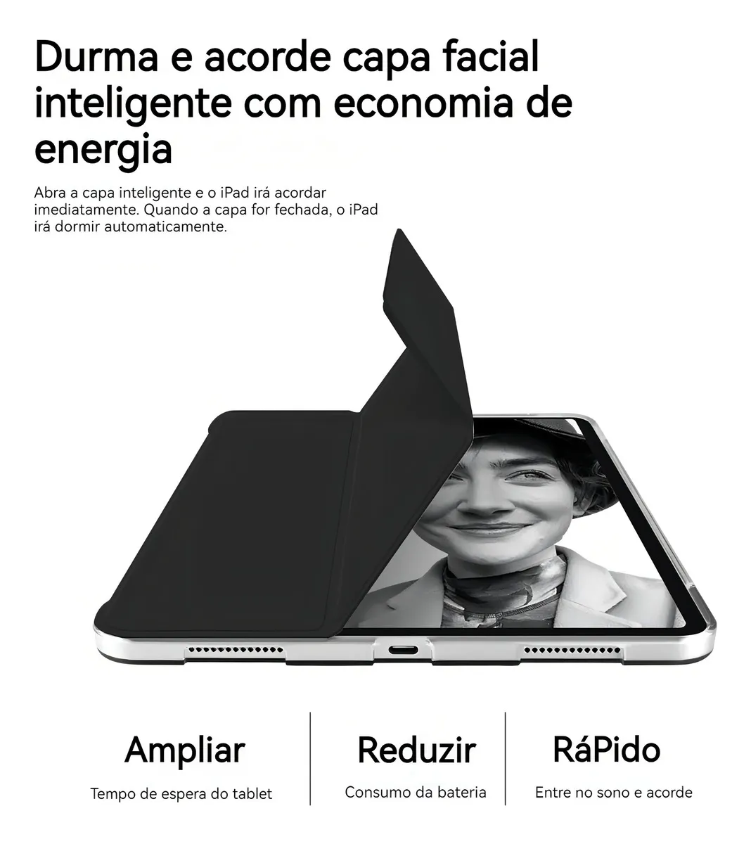 Suspensão Inteligente: A função de suspensão e ativação inteligente ajuda a economizar energia, prolongando a vida útil da bateria do seu dispositivo, ao mesmo tempo que facilita o acesso rápido.