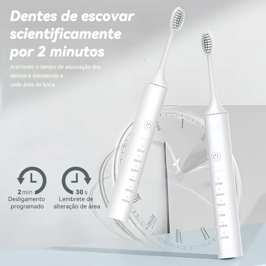 · A escova de dentes elétrica é equipada com um temporizador inteligente de 2 minutos, de modo que você pode escovar os dentes pelo tempo recomendado pelo dentista.
