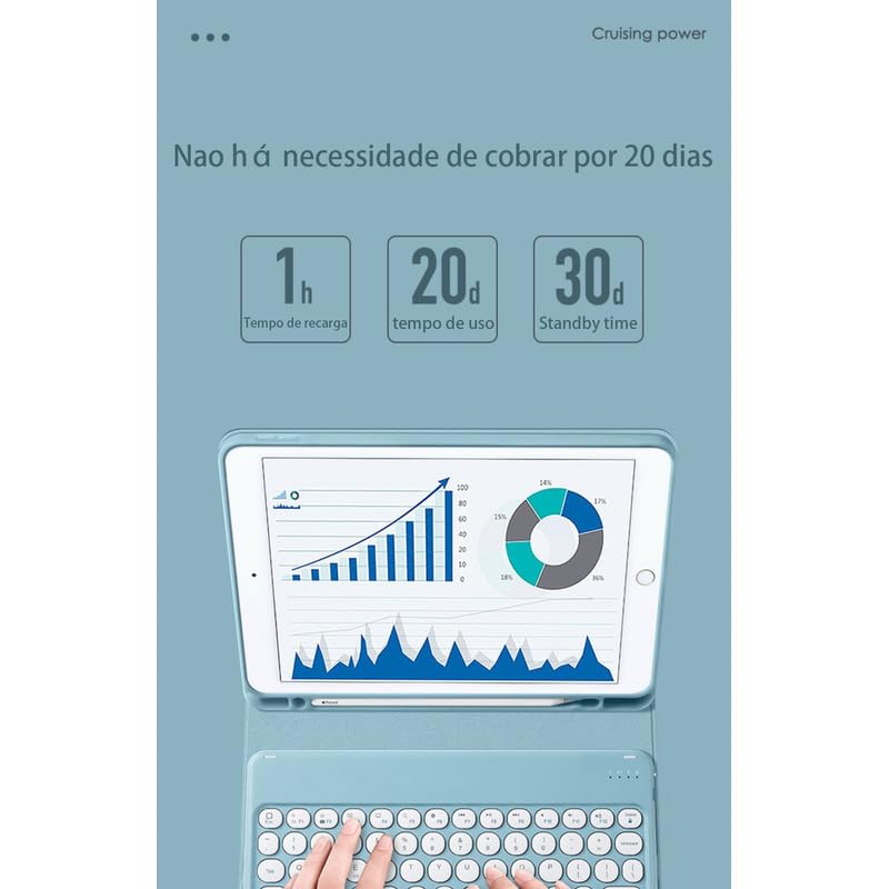 –Verifique se o modelo do seu tablet é igual ao encomendado antes de fazer um pedido! –Se o modelo do seu tablet não for encontrado, entre em contato diretamente com o atendimento ao cliente! –O teclado é americano e não possui uma tecla ç separada. Mude para um teclado português ao usá-lo.. A porta de carregamento é USB e –O sistema do tablet precisa ser atualizado para iOS 13 ou superior Ativação da função do mouse Ios 13: “Configurações” — “Acessibilidade” — “Toque” — Toque Assistivo — “Ativar” —Método de conexão do teclado— Método de conexão do teclado de toque: 1. Pressione o botão na lateral do teclado para “ON”; 2. Pressione e segure o botão “FN+C” para ativar o modo Bluetooth do teclado; Método de conexão de teclado padrão ou retroiluminado: 1. Pressione o botão na lateral do teclado para “ON”; 2. Pressione o botão “conectar” e a luz do Bluetooth acenderá;