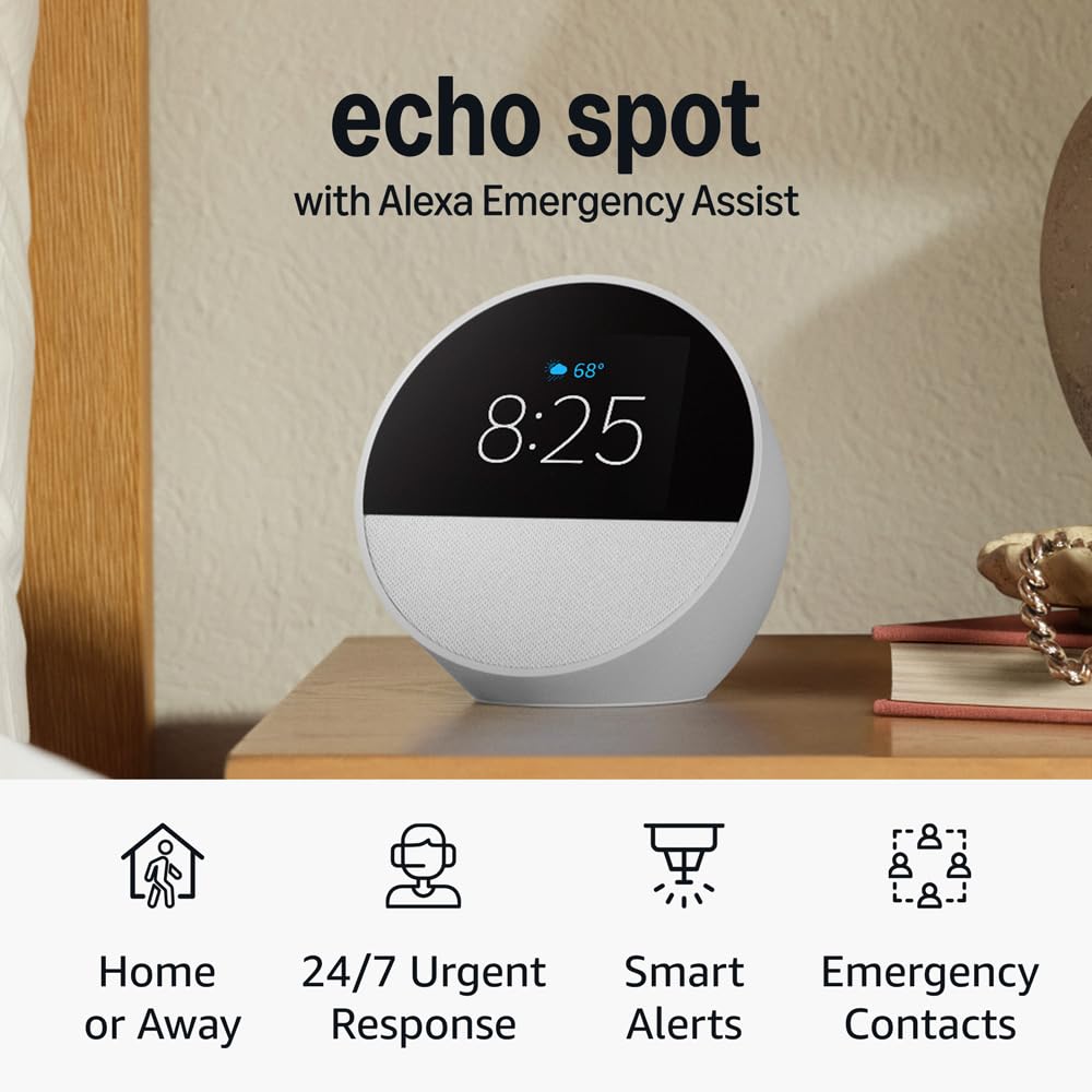 · CONHEÇA O ECHO SPOT – Um despertador inteligente elegante com Alexa e som potente e vibrante. Pronto para ajudá-lo a acordar, relaxar e muito mais.