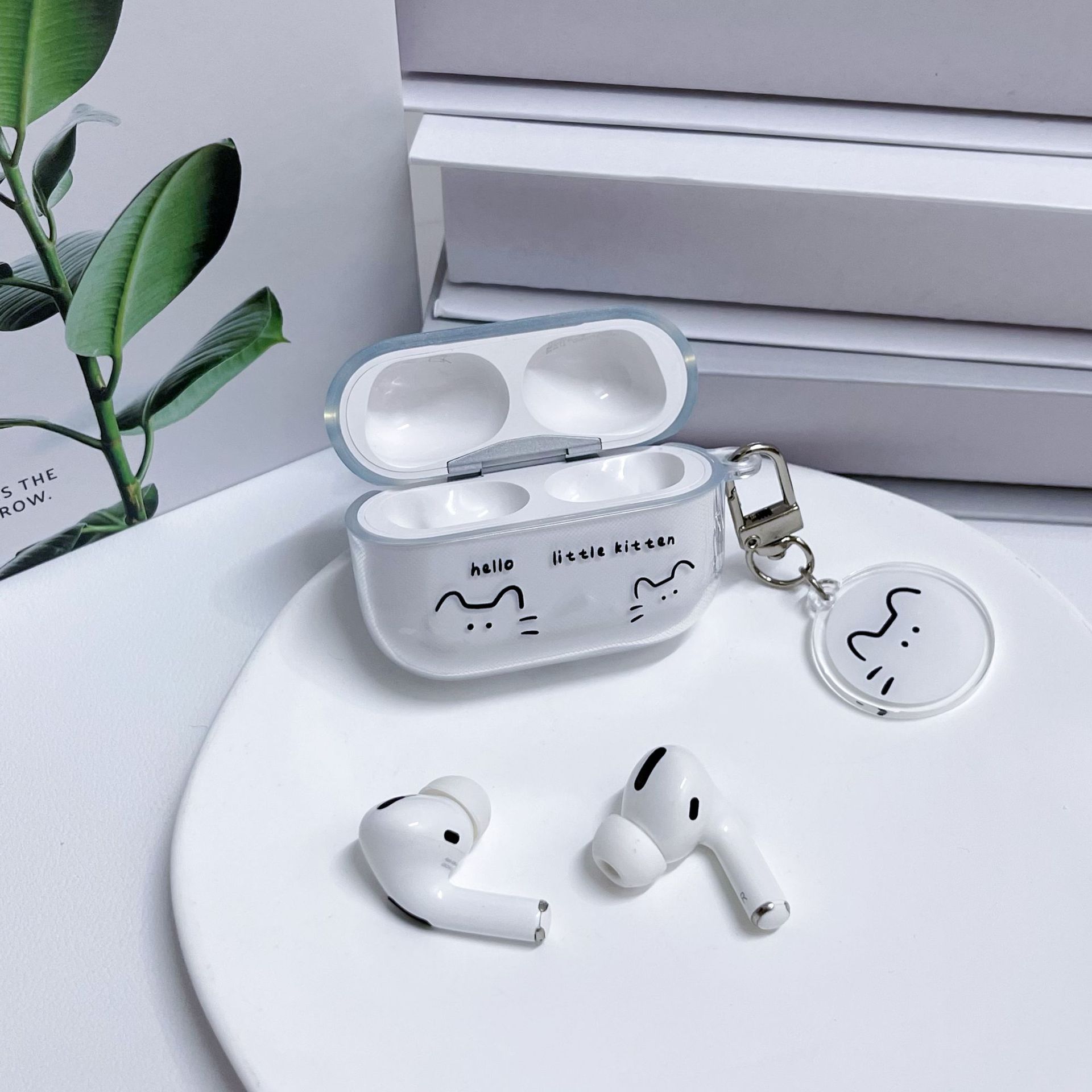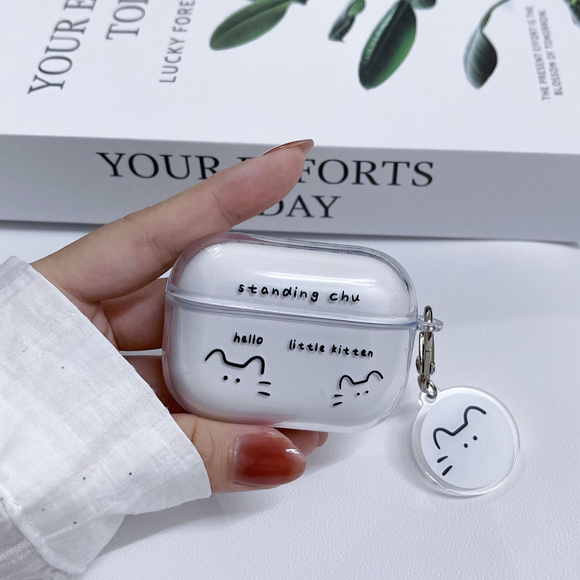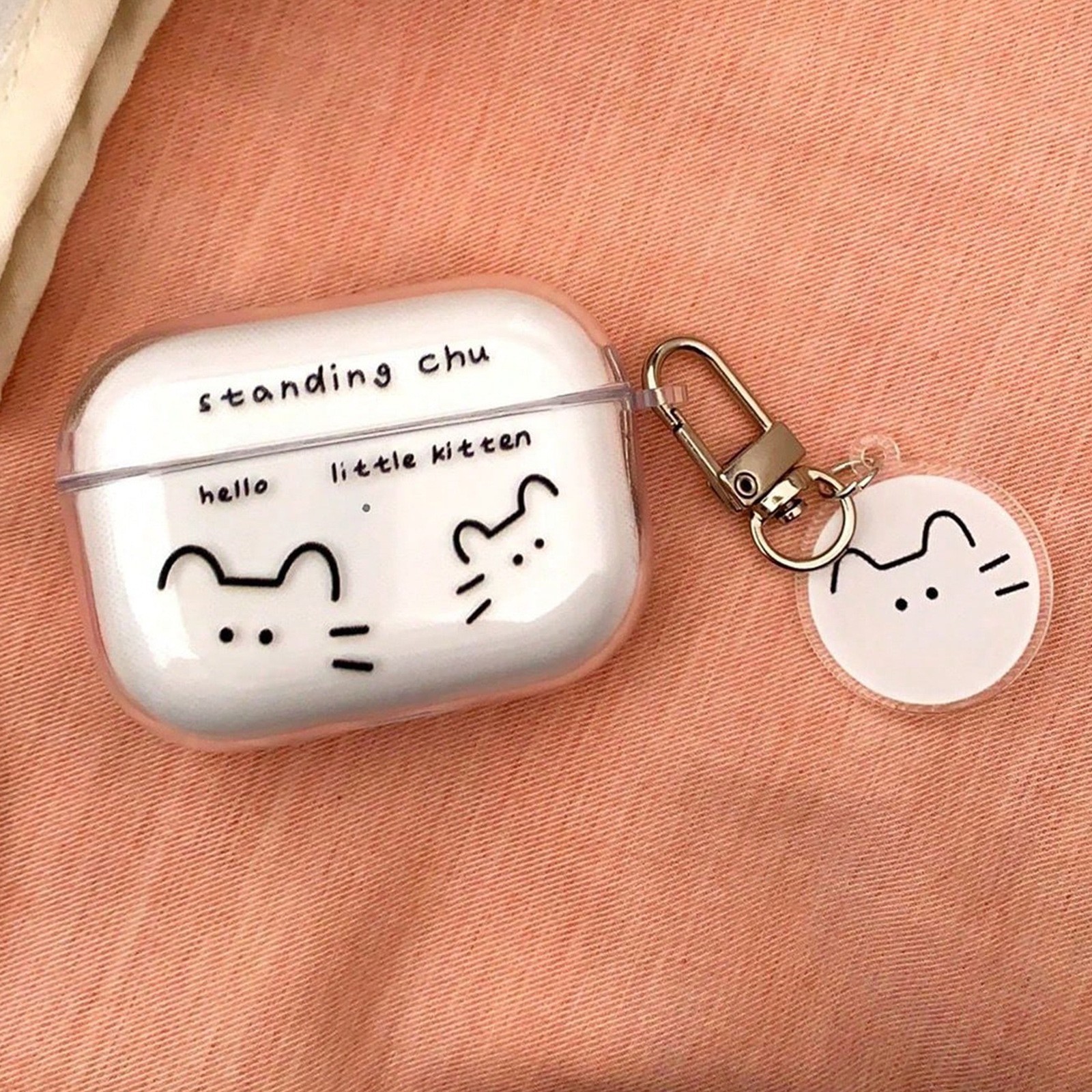 Line Cat AirPods Protective Case Protective Case Apple Bluetooth Headset Instagram Style Transparent in stock