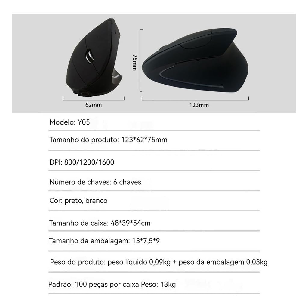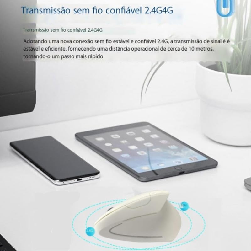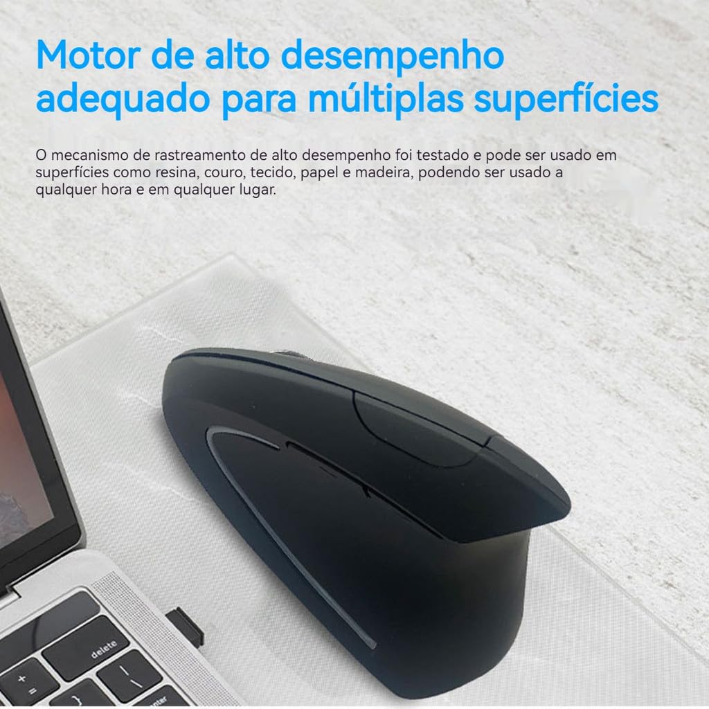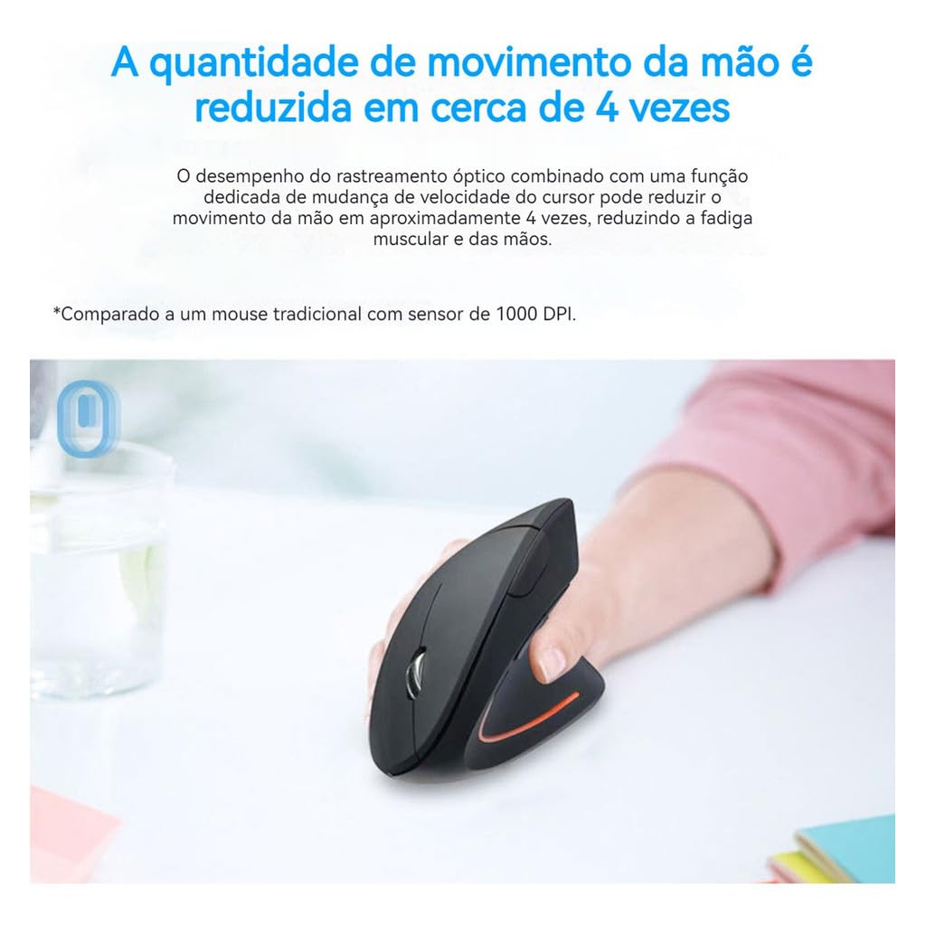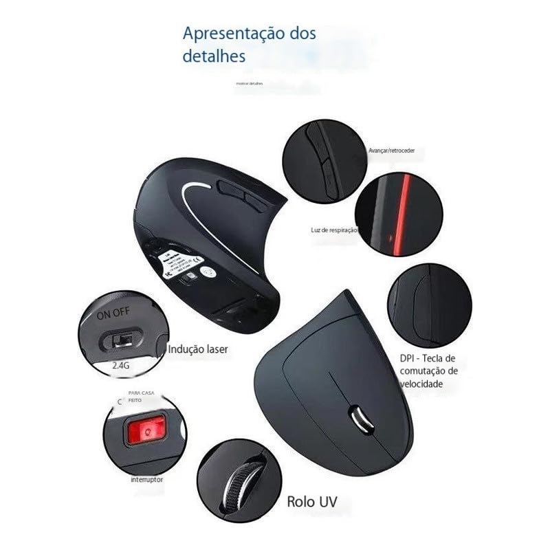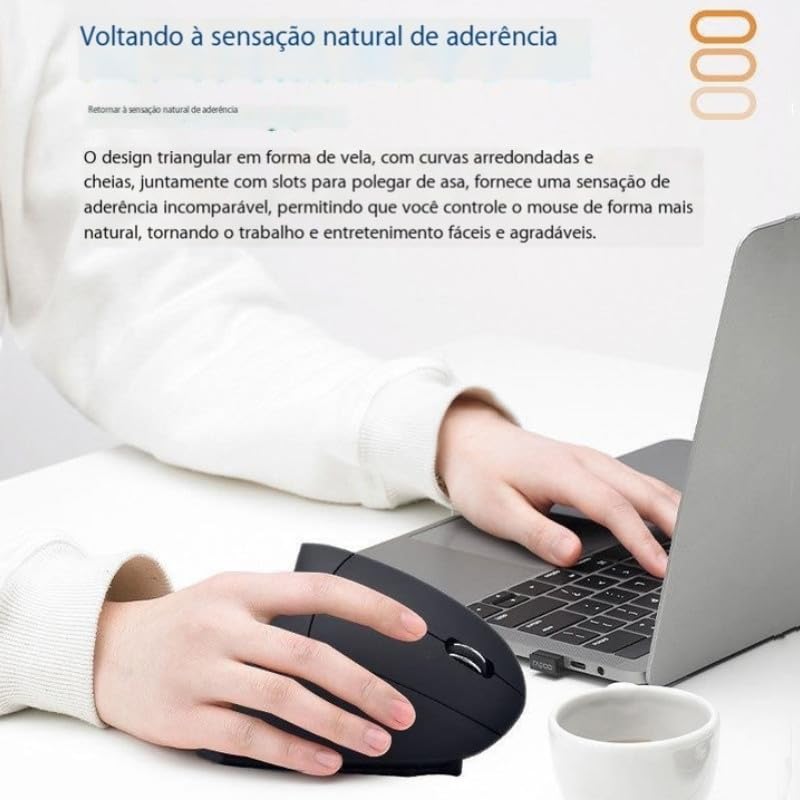 –Apresentamos nosso Mouse Vertical Sem Fio USB, desenhado para oferecer conforto e eficiência. Com um ângulo ergonômico de aproximadamente 60° e um formato triangular de vela, este mouse proporciona uma experiência de uso natural, reduzindo a tensão no pulso e no braço. –Este mouse é ideal para quem passa longas horas no computador e busca uma solução ergonômica para evitar o desconforto no pulso e melhorar a eficiência no trabalho.