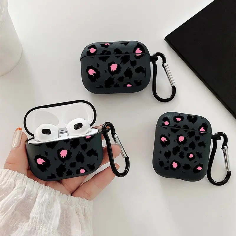 Rose red black leopard print suitable for AirPods 1/2 generation protective case, Apple Pro/3 wireless Bluetooth headphone cover