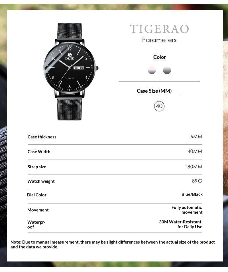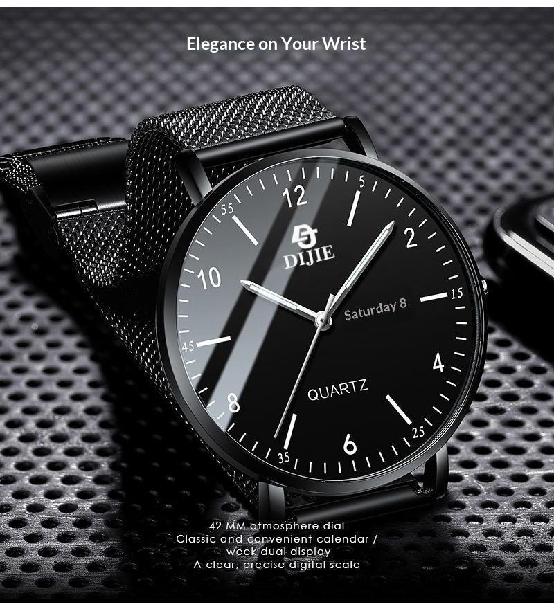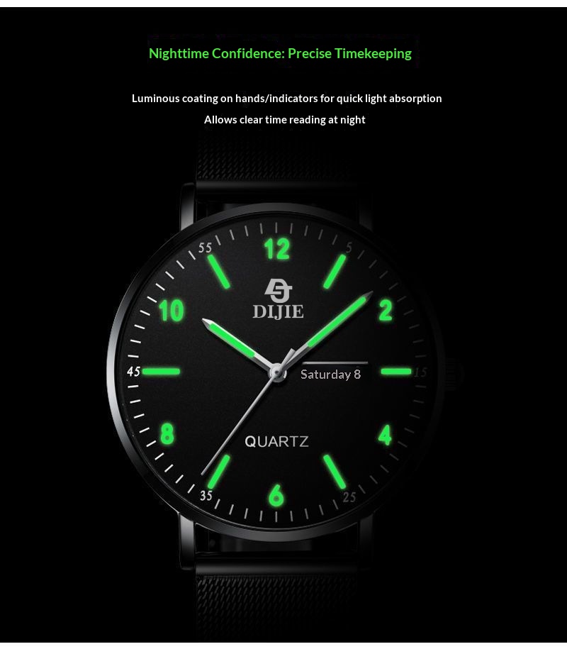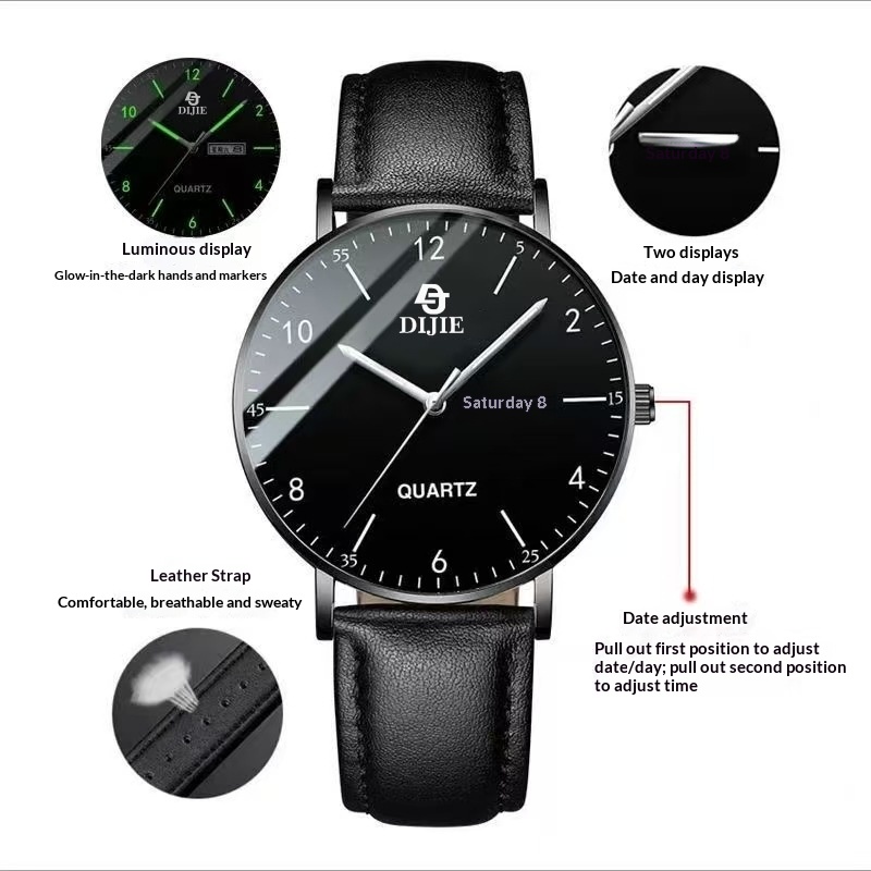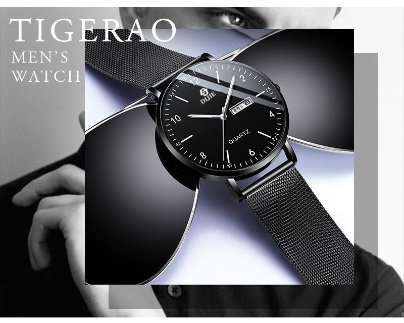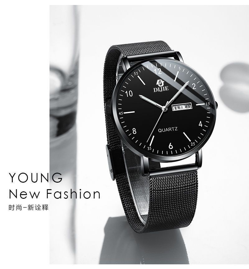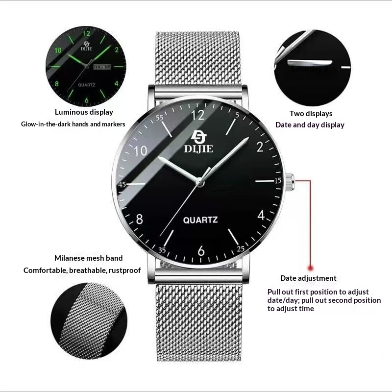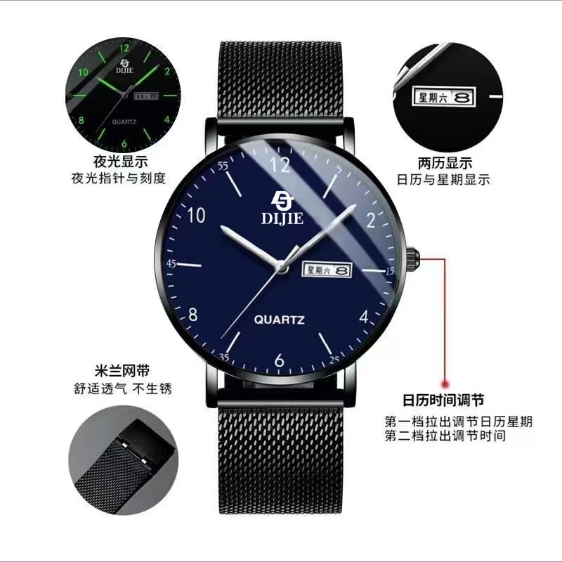 Silent Quartz Watch Trend Luminous Korean Version Trendyy Fashion Dual Calendar Student Junior High School Student Watch Watch Men’s Watch