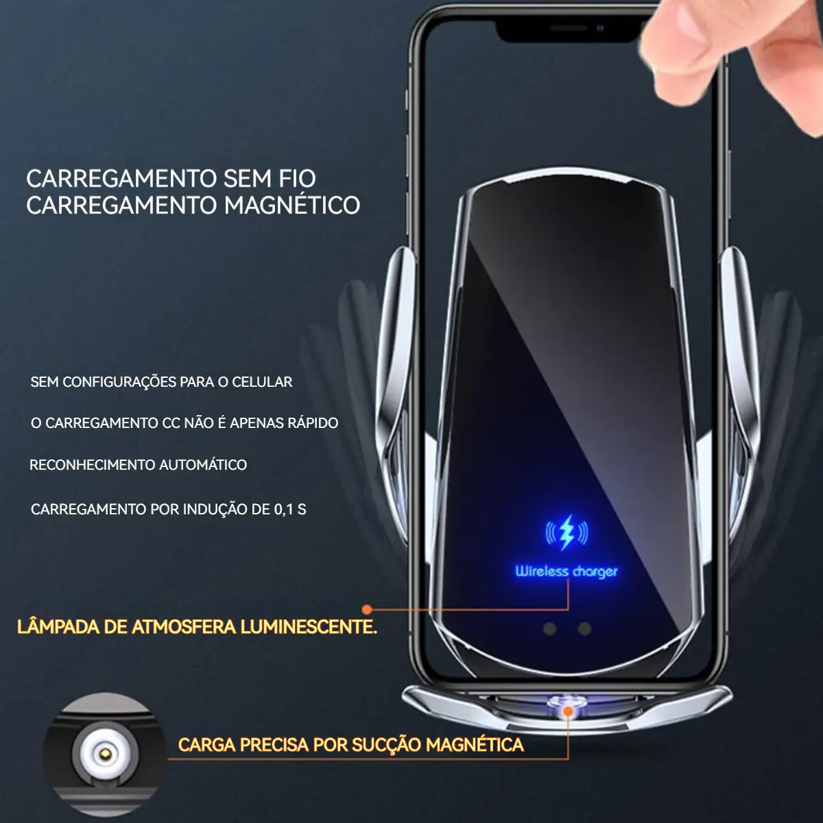 Carregamento Sem Fio Rápido e Inteligente: Carregue seu smartphone sem fio de forma rápida e inteligente, sem danificar o dispositivo.