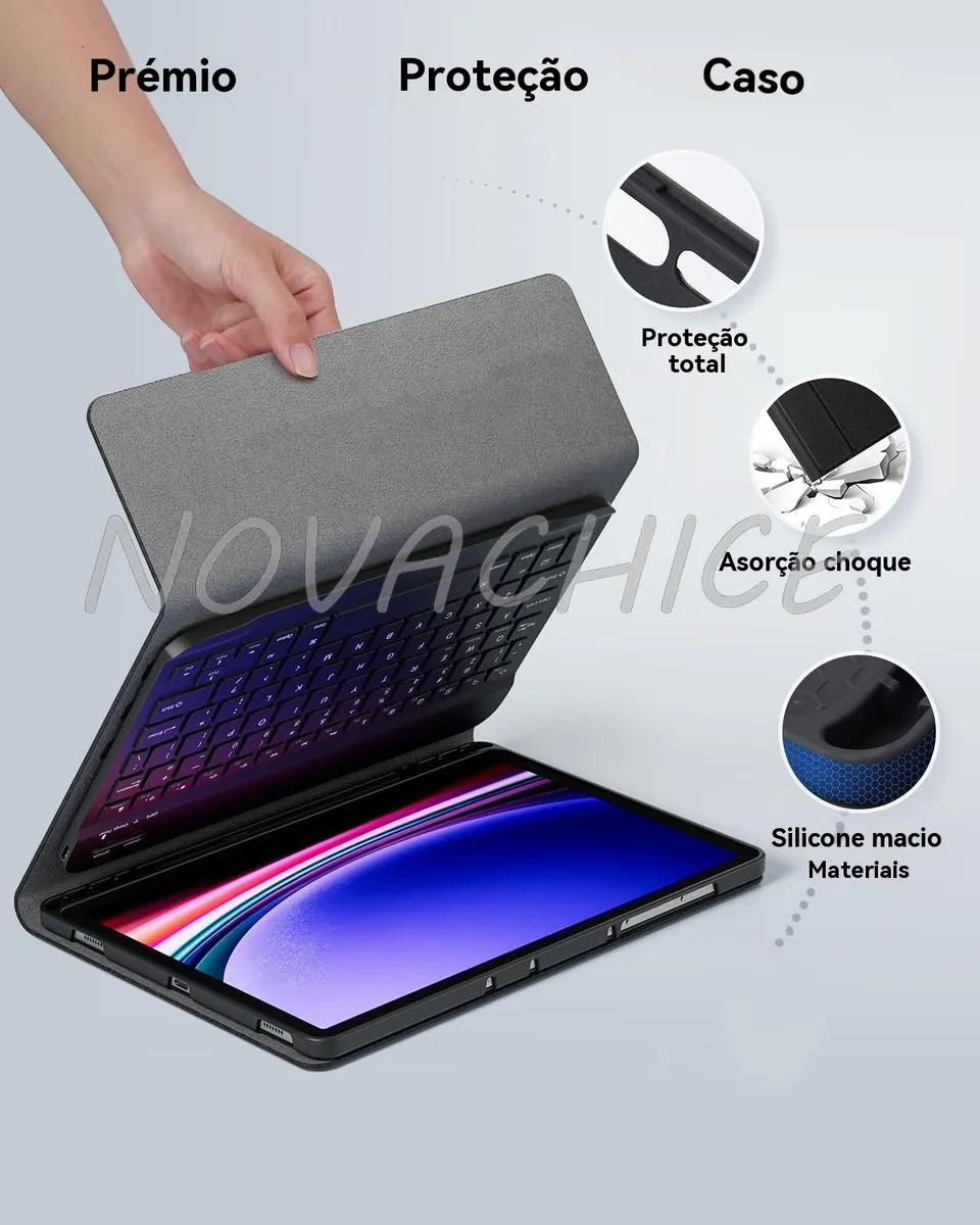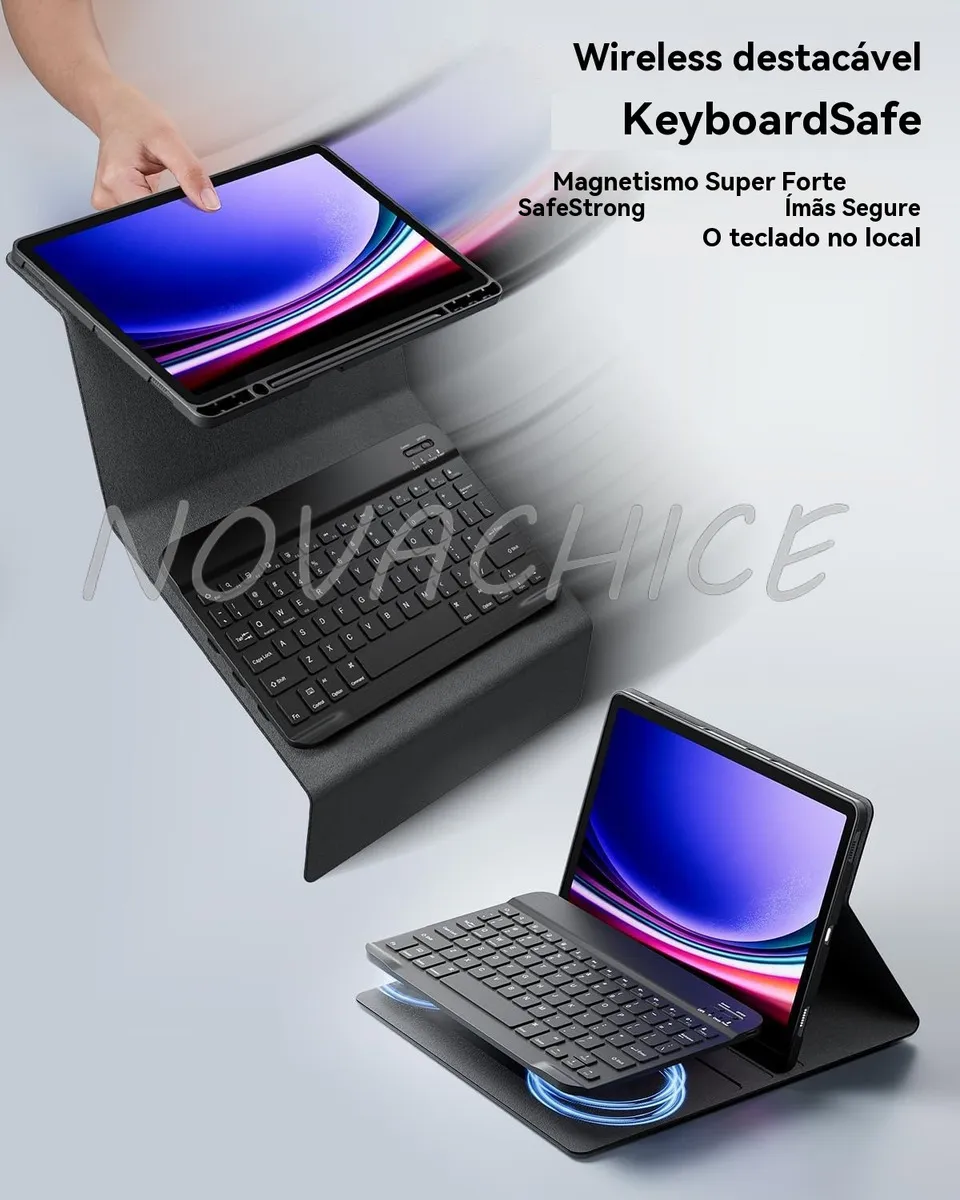Design Divisível: A estrutura da capa permite a separação do tablet e dos acessórios, tornando-a ainda mais versátil e fácil de usar.