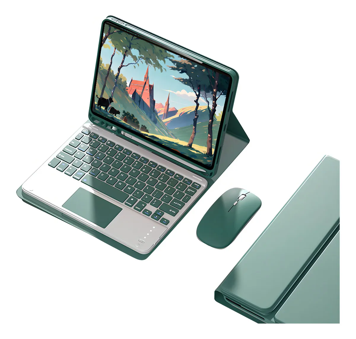 Dark Night Green Shell & Touch Keyboard & Mouse, Preto + Preto Teclado + Preto Carregamento Bluetooth Mouse