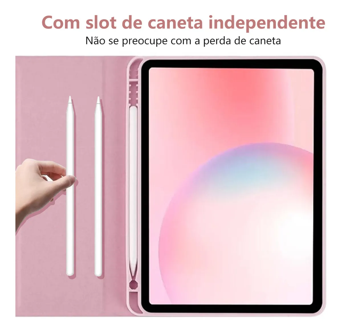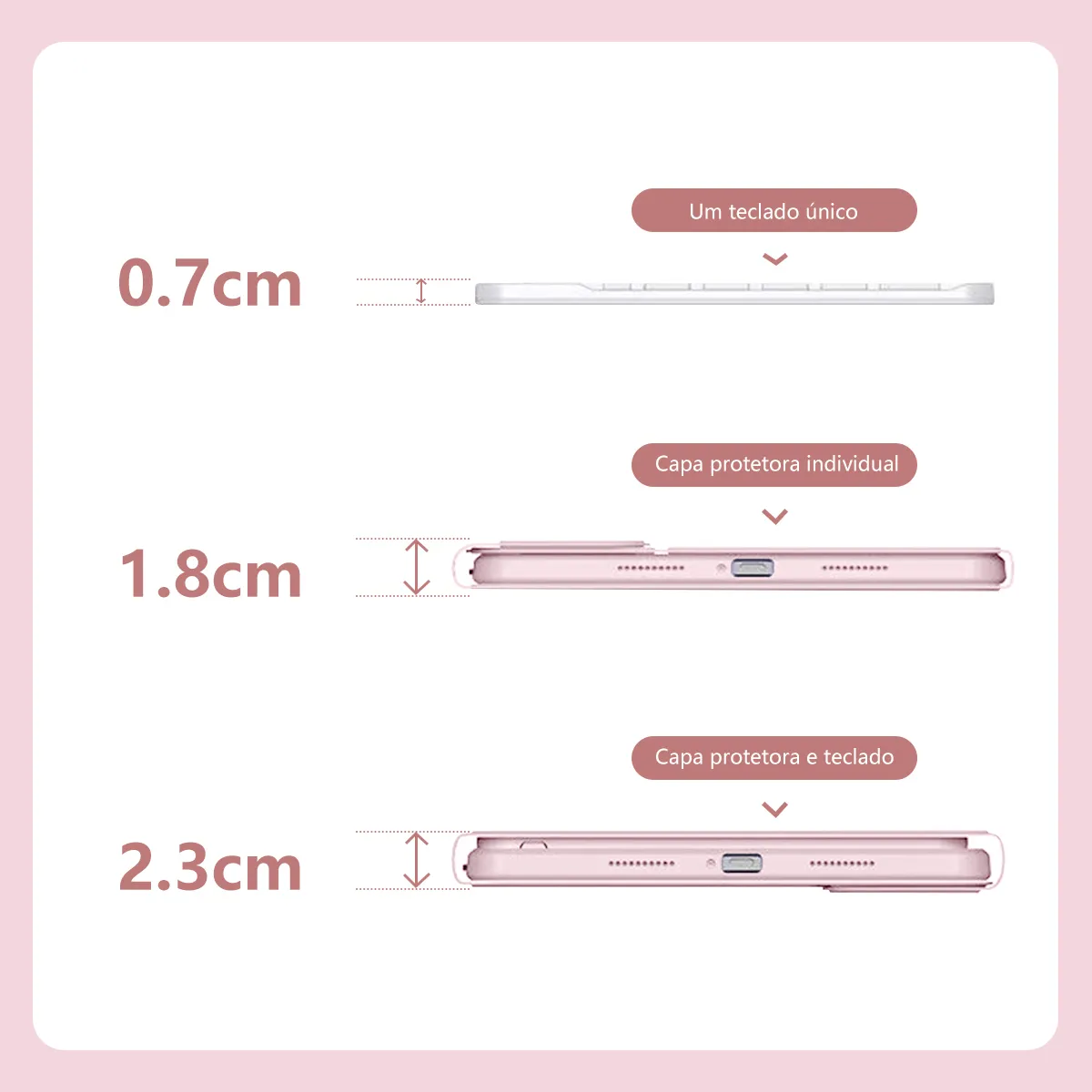 **Capa Bluetooth sem fio com teclado – O design superfino adiciona proteção máxima com volume mínimo (0,38 pol.), proporcionando uma experiência de digitação suave e confortável.