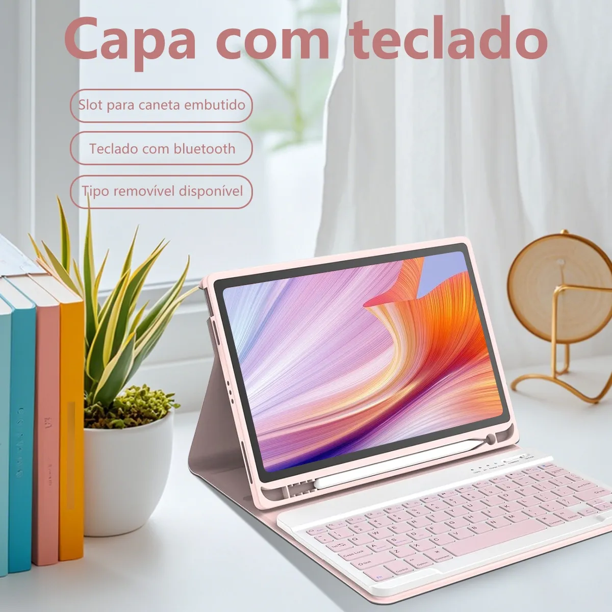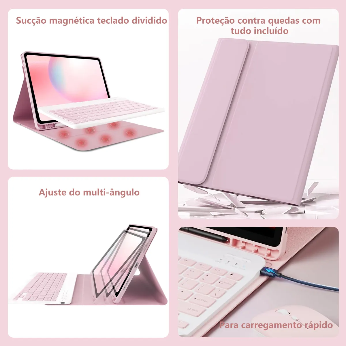 O design modular apresenta um teclado removível que transforma seu iPad em um laptop ou seu livro favorito em menos de um segundo. No modo portátil, o design inteligente ajusta-se facilmente a qualquer ângulo confortável que melhor lhe convier. Perfeito para trabalhar, escrever ou assistir a vídeos no trabalho, na escola, em viagens e em casa.