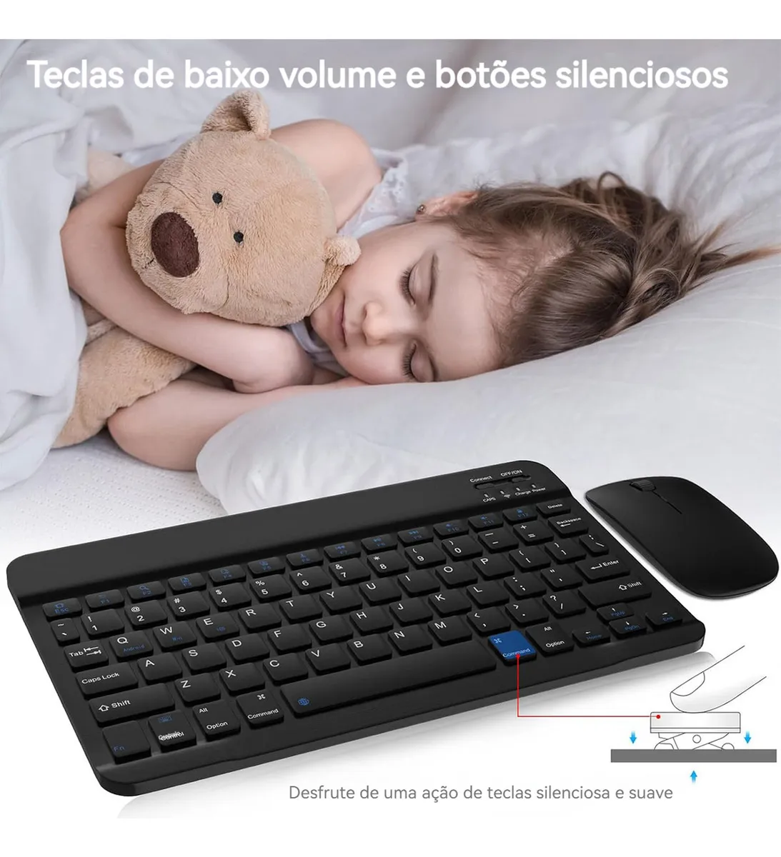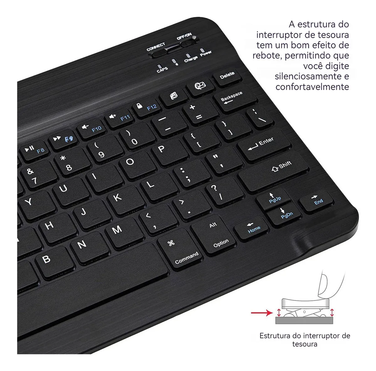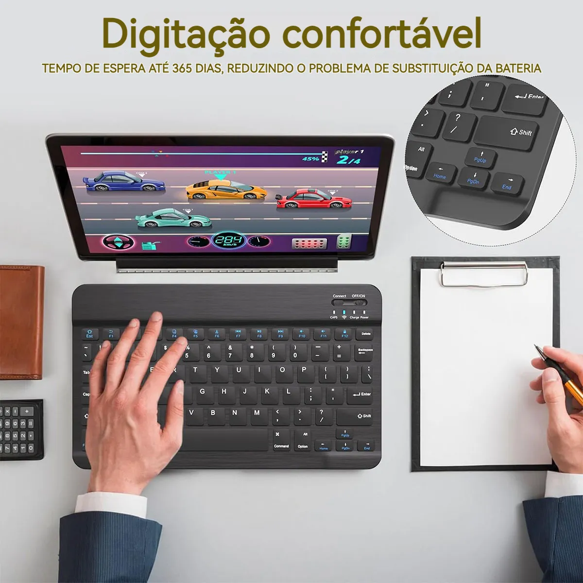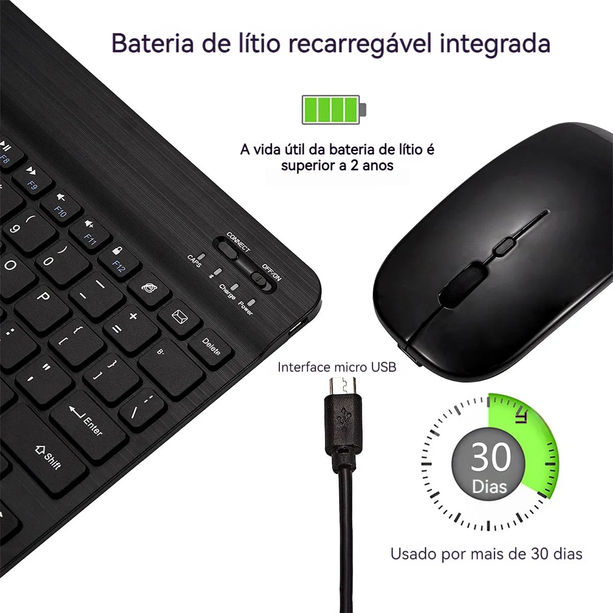 Compatibilidade Ampliada: Oferecendo conectividade via Bluetooth 2.4G, este kit é universalmente compatível com uma vasta gama de dispositivos, incluindo iPad, tablets e smartphones, promovendo uma experiência de uso sem esforço e altamente versátil.
