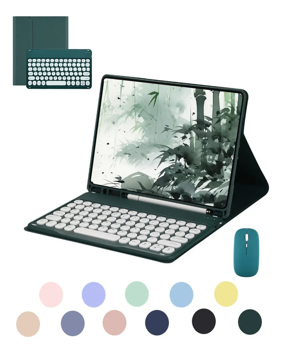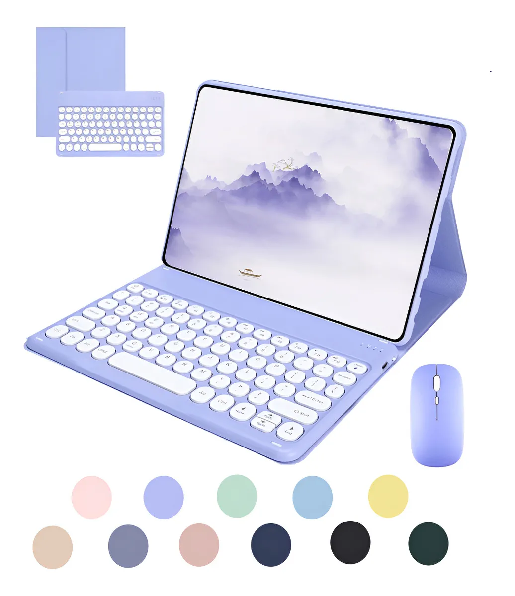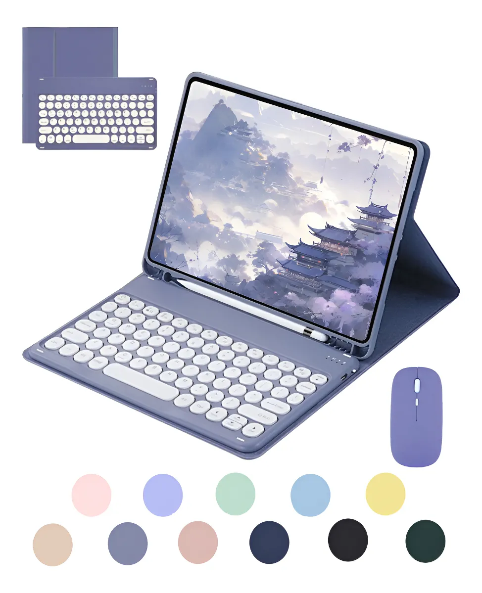 Azul escuro + teclado redondo azul escuro + mouse Bluetooth recarregável preto, Capa de couro roxo lavanda + teclado redondo + mouse, Cinza lavanda teclado redondo mouse Bluetooth recarregável, Flor de cereja em pó + teclado redondo rosa + mouse Bluetooth recarregável rosa, Haitang vermelho + Haitang vermelho teclado redondo + mouse de carregamento, Laranja Vibrante Teclado Redondo Mouse Bluetooth Recarregável, Mist Blue + Mist Blue Round Keyboard + Mist Blue Carregamento Bluetooth Mouse, Noite escura verde + teclado circular verde + mouse de carregamento verde Bluetooth, Sky Cloud Azul + Sky Cloud Azul Teclado + Teclado Circular + Mouse, Tartrazine + limão amarelo teclado redondo + limão amarelo carregamento Bluetooth mouse, Teclado redondo dourado branco mouse Bluetooth recarregável branco