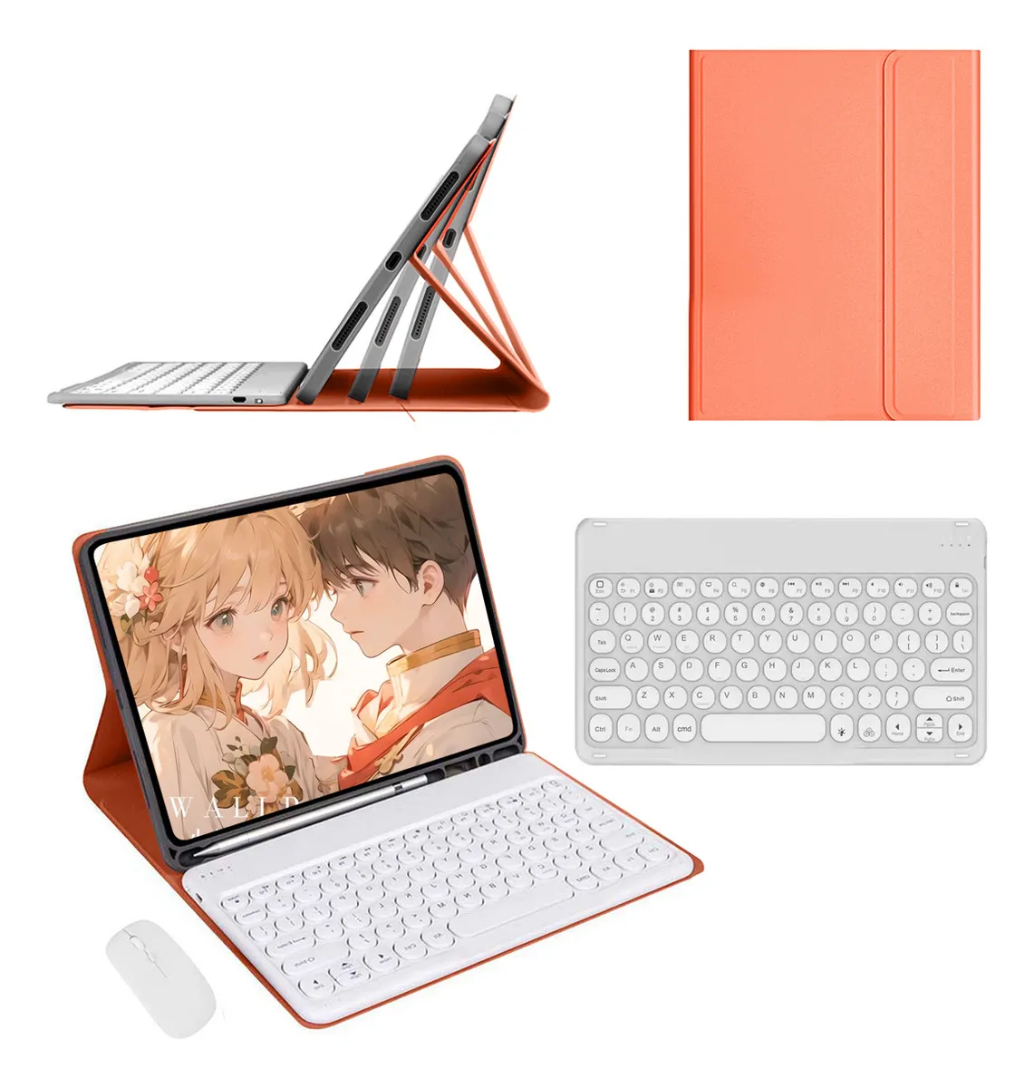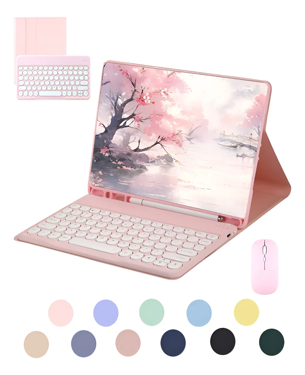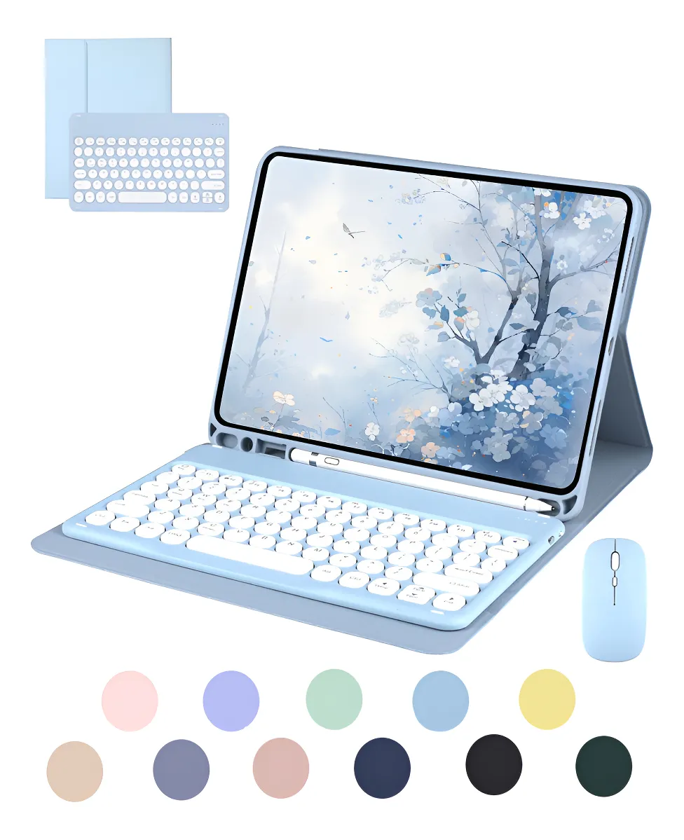Azul escuro + teclado redondo azul escuro + mouse Bluetooth recarregável preto, Capa de couro roxo lavanda + teclado redondo + mouse, Cinza lavanda teclado redondo mouse Bluetooth recarregável, Flor de cereja em pó + teclado redondo rosa + mouse Bluetooth recarregável rosa, Haitang vermelho + Haitang vermelho teclado redondo + mouse de carregamento, Laranja Vibrante Teclado Redondo Mouse Bluetooth Recarregável, Mist Blue + Mist Blue Round Keyboard + Mist Blue Carregamento Bluetooth Mouse, Noite escura verde + teclado circular verde + mouse de carregamento verde Bluetooth, Sky Cloud Azul + Sky Cloud Azul Teclado + Teclado Circular + Mouse, Tartrazine + limão amarelo teclado redondo + limão amarelo carregamento Bluetooth mouse, Teclado redondo dourado branco mouse Bluetooth recarregável branco