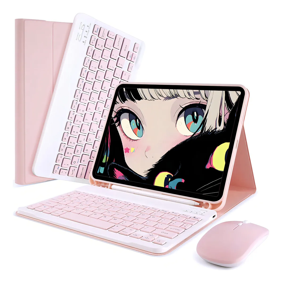 Teclado, mouse e capa para iPad Air4/Air5 10,9” A2588 A2316 cor Sakura Pink Teclado rosa Carregamento Bluetooth do mouse rosa
