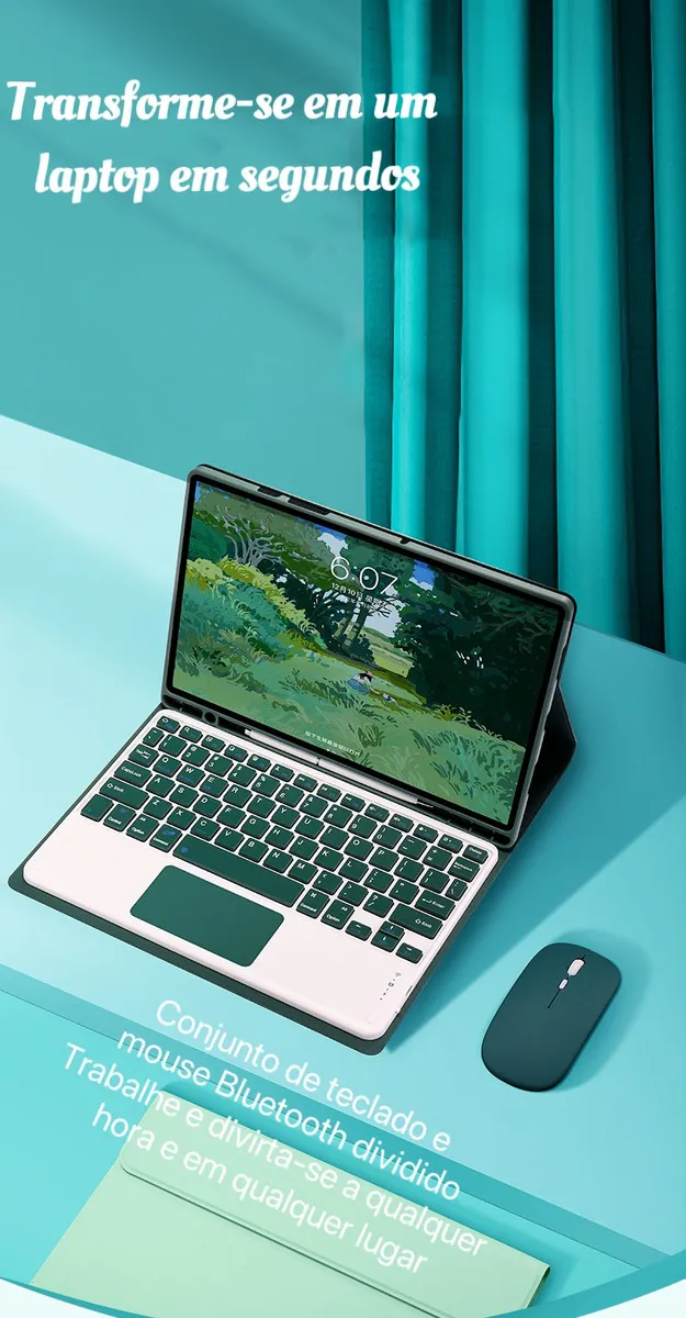 Capa + Mouse + Teclado Redondo Para Samsung Tab A9+ 11 Polegadas X210/X216/X218